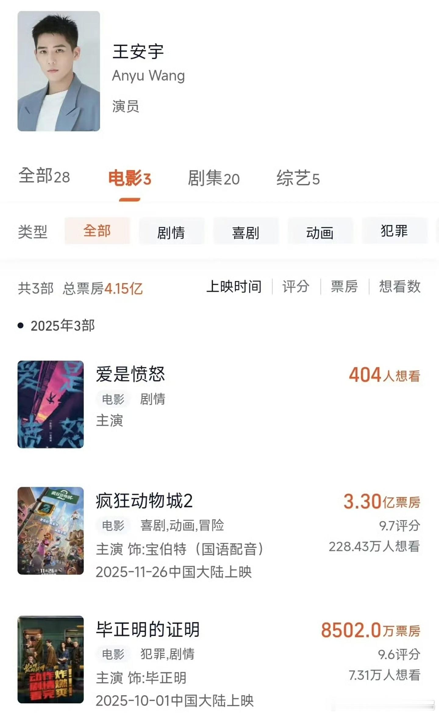 如果我没记错的话,王安宇在里边就是个国语配音吧?这要是都能算到票房成绩的话,那以后配音这个行业,估计都要被娱乐圈明星给占了。那些专业配音演员还不都得饿死啊?