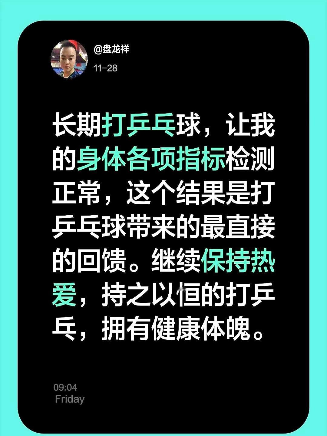 打乒乓球带来的好处。 我每周都雷打不动地跑去球馆,就为了出一身透汗。 我拿着那张写着“各项指标正常”的体检单,心里就觉得这汗没白流。 所以我把这张单子当成了我的奖状,现在擦拭球拍的时候都更有劲儿了。 我盘算着下个周末还得去球馆,这身体可得自己疼。