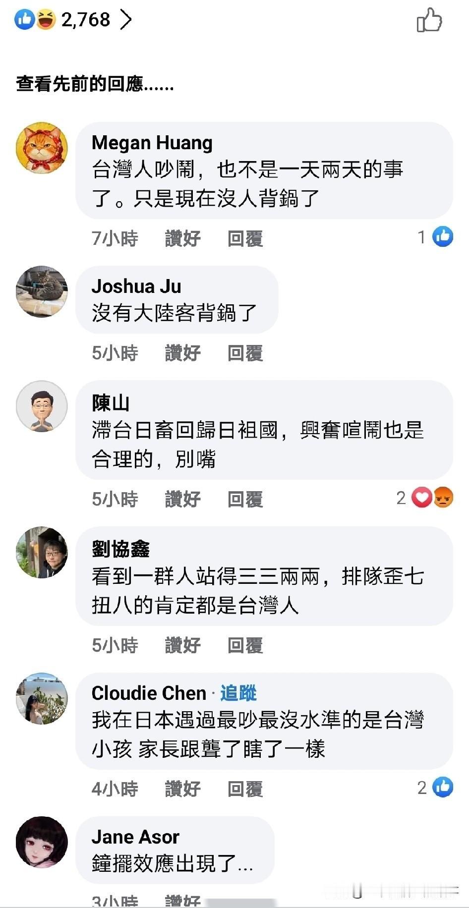 大陆游客不去琉球 台湾网友喊没人帮台游客没素质背锅了 随着大陆和日本关系紧张,众多大陆民众纷纷取消去日本和琉球的旅游计划,顿时当地几乎没有了大陆游客。结果台湾网友感叹,没有了大陆游客,台湾人在当地大声喧哗吵闹不排队没素质现象很严重,搞笑的是该网友喊话台湾人注意素质,现在没大陆游客替他们背锅了。评论区台湾人也都承认台湾游客没素质,平时台湾游客没素质行为都让大陆游客背锅了。 可叹可笑!