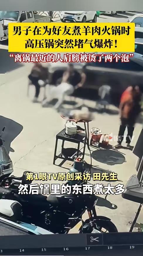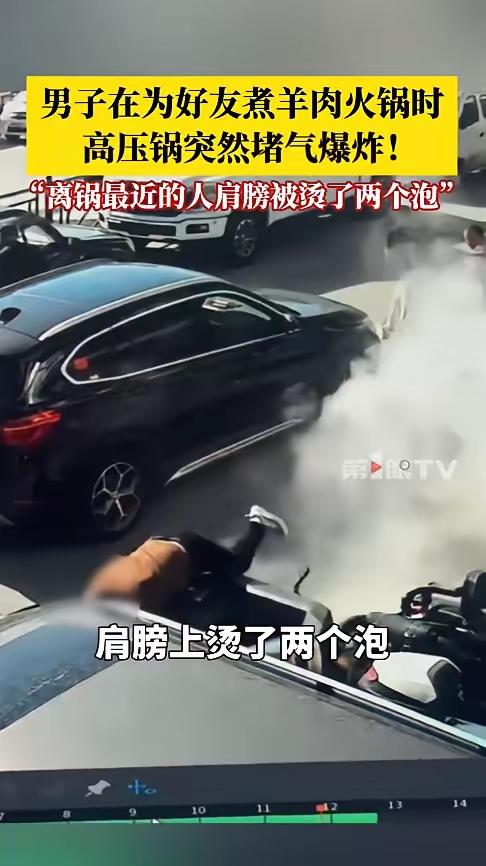 “悲剧还是发生了!”11月25日,湖北宜昌,一男子为了招待朋友,用高压锅煮羊腿吃,煮了一会后,男子发现排气孔不冒烟,于是就用筷子翘了一下,没想到,高压锅瞬间发生爆炸,男子慌不择路摔倒在地!网友:幸好不在室内。 谁能想到,一顿招待朋友的羊肉宴,竟差点酿成无法挽回的悲剧? 11月25日湖北宜昌,田先生的一场家宴,硬生生被一口高压锅变成了惊魂时刻。 为了好好款待上门的朋友,田先生特意买了新鲜羊腿,在店门口支起高压锅炖煮。 没多久,浓郁的羊肉香就飘得老远,朋友们围着灶台,满心期待这顿美食。 可没等大家高兴多久,田先生就发现了异常——高压锅盖的排气孔,始终没冒出一丝热气。 他心里犯了嘀咕,生怕锅内气压越积越高出危险,一时心急,就随手拿起一根筷子,想去撬开排气孔放气。 就是这一个大意的举动,瞬间引发了意外。 只听“砰”的一声巨响,高压锅突然爆炸,滚烫的羊肉汤裹挟着碎渣,瞬间向四周喷溅。 田先生慌不择路往后躲,没注意身后的电动车,狠狠撞上去摔在地上,浑身沾满油污。 旁边的朋友也没能幸免,离锅最近的人肩膀被滚烫的汤汁溅到,当场起了两个大大的水泡,疼得直咧嘴。 事后检查才知道,悲剧的根源的有两个:一是锅盖上的密封胶条早已老化,失去了密封作用; 二是锅内炖煮的羊腿块较大,加上汤汁浓稠,不小心将排气孔彻底堵死,气压无法排出,最终引发爆炸。 网友看了视频后纷纷留言,有人说“幸好是在室外,要是在屋里,后果不堪设想”; 也有人感慨“家里的高压锅用久了就该换,别为了省点钱拿安全开玩笑”。 高压锅是家家户户常用的厨具,方便快捷,却也暗藏风险,稍有不慎就可能变成“定时炸弹”。 作为经常做饭的人,我想说,使用高压锅从来不能心存侥幸。 每次用之前,一定要仔细检查密封胶条是否完好、排气孔是否通畅,食材也不能放得太满; 一旦发现异常,千万不要强行开盖、撬排气孔,及时关闭火源,等锅内气压自然下降才是最安全的。 一顿美食再香,也比不上家人朋友的安全重要。 看似不起眼的小疏忽,很可能引发大危险,希望大家都能引以为戒,规范使用厨具,别让意外毁了团圆。