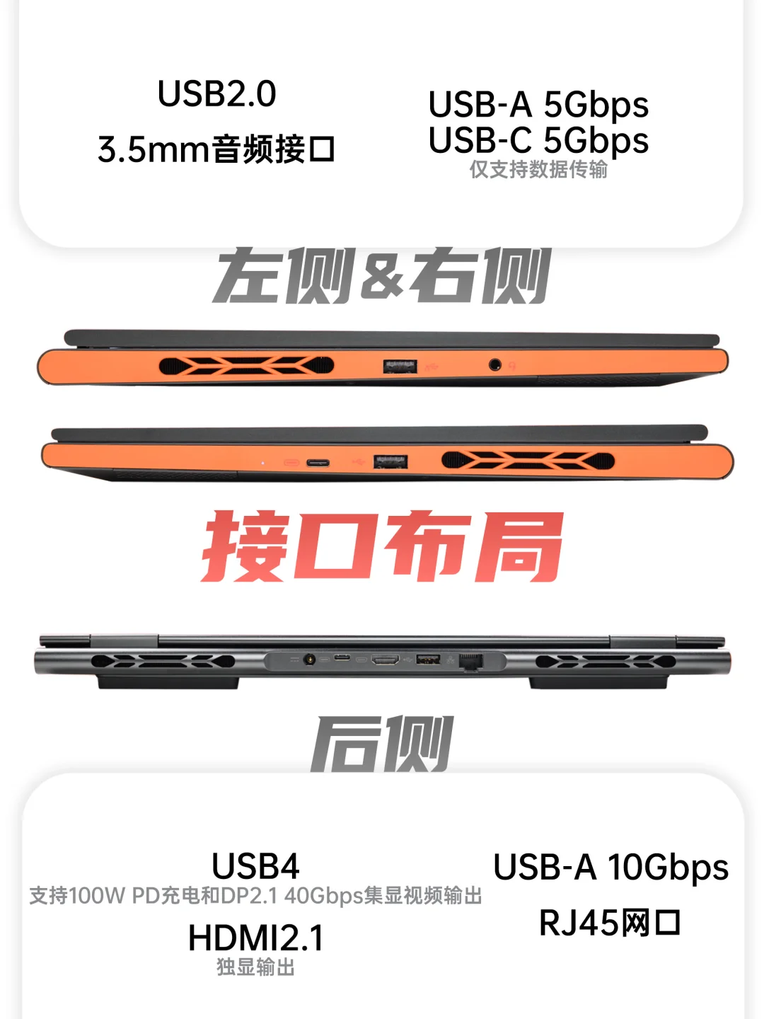 接口配置也很混乱,在一台机器上同时出现USB-C 5Gbps、USB-A 10Gbps和USB 4接口。[失望R]