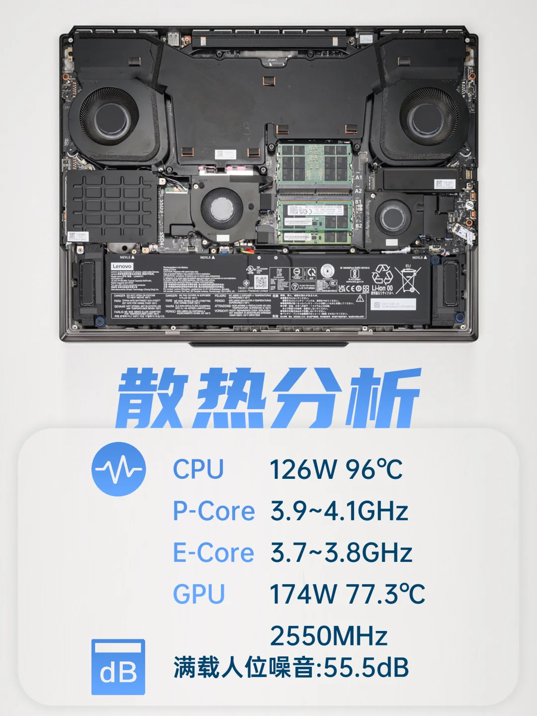 ✅采用四风扇内吹设计,散热很强