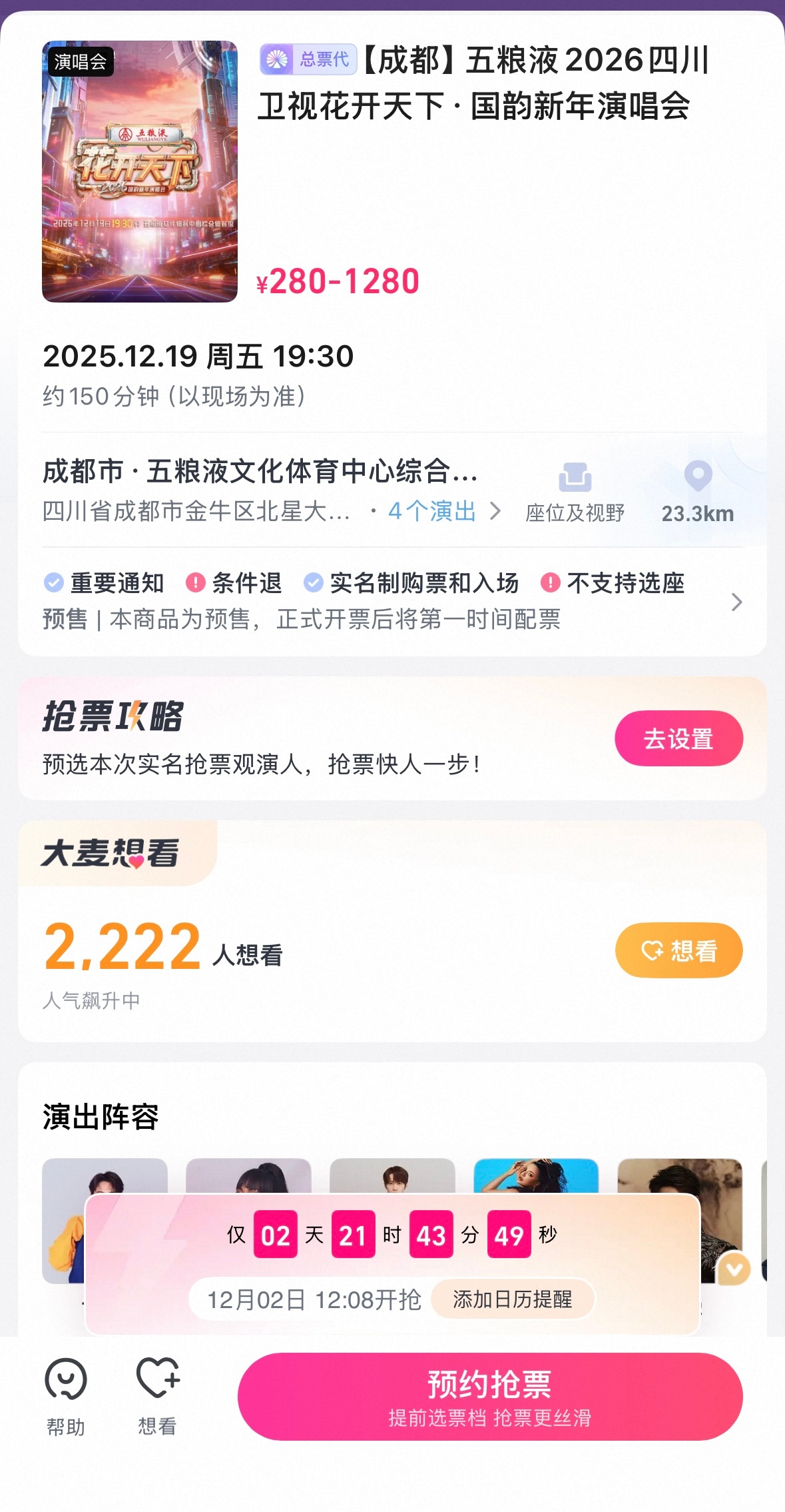 四川卫视花开天下新年演唱会 全阵容官宣‼️赵雅芝、李宇春、罗云熙、GAI周延、丁真珍珠、喻言、刘宇、吉克隽逸、韦唯、姚琛、井胧、陈瑶、VaVa毛衍七、江映蓉、唐汉霄、Lambert凌杰、张珈铭、小连杀(徐静)、鲜克12.2抢🎫,大家准备去看谁呢? 四川卫视花开天下新年演唱会路透 📍12.19 五粮液凤凰山体育馆