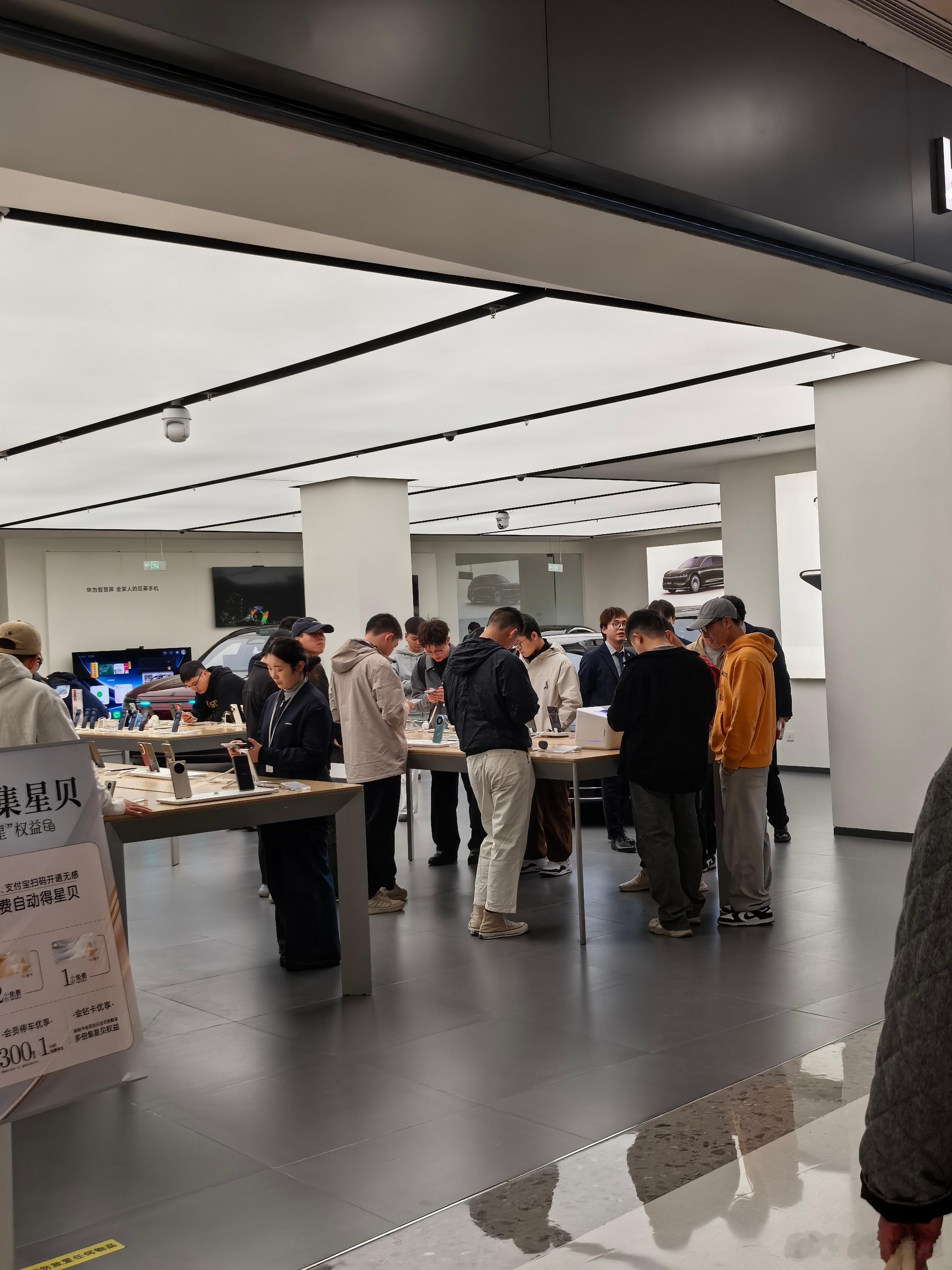 今天来华为商超看看享界S9问界M7智界R7 ,店面很大,有手机、平板、手表,店里人也超级多,逛一天都逛不完我和汽车的日常