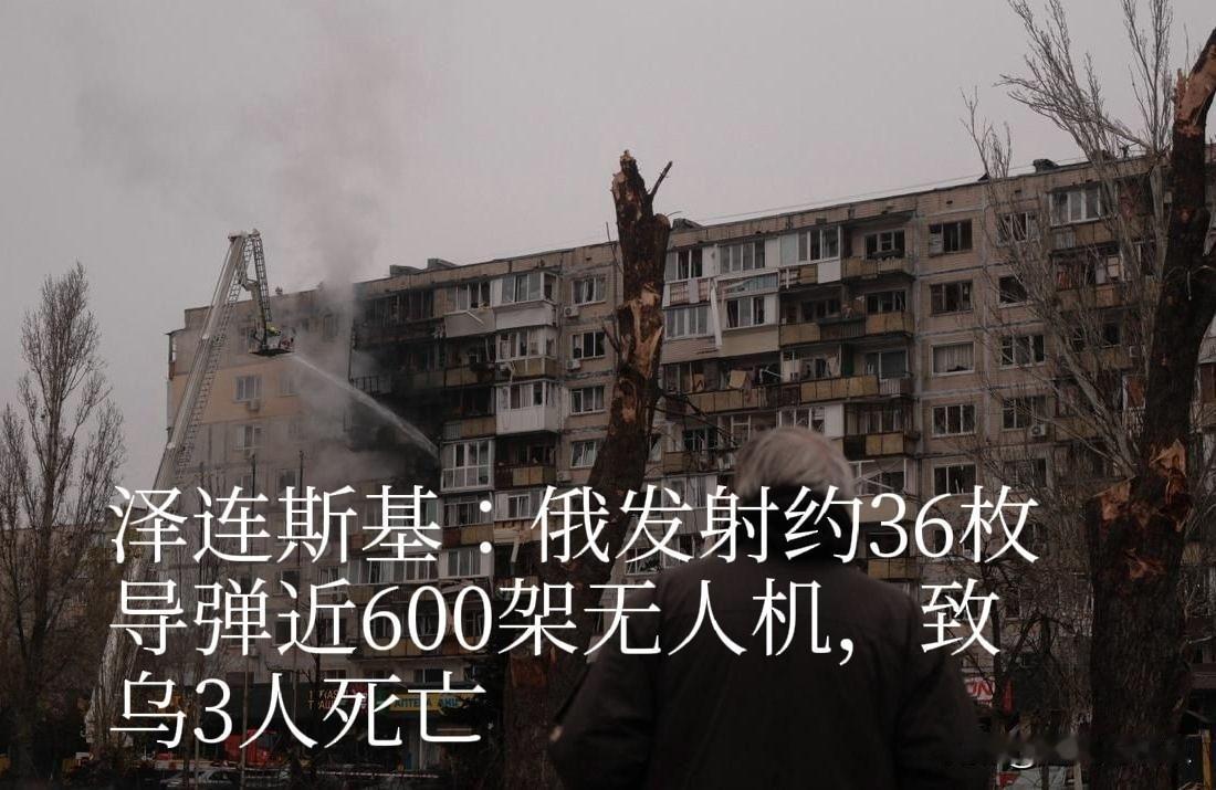泽连斯基:俄发射约36枚导弹近600架无人机,致乌3人死亡 据外媒报道11月29日,乌克兰一处遭袭击乌克兰总统泽连斯基11月29日在其官方社交平台发文称,当天俄罗斯向乌克兰发射了大约36枚导弹和近600架无人机,袭击的主要目标是能源和民用设施,许多住宅楼受损并发生火灾。截至目前,已有3人死亡,数十人受伤。 俄方对此暂无回应。 29日稍早前,乌克兰基辅市军政管理局通报称,当天凌晨俄军对基辅市的袭击截至目前已造成2人死亡,13人受伤。