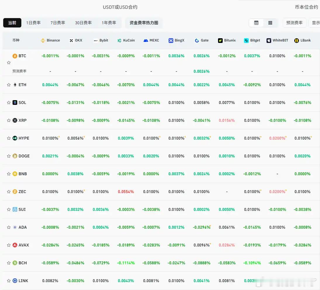 11 月 29 日,Coinglass 数据显示,加密市场昨夜迎来一轮明显反弹,比特币一度突破 93,000 美元,但情绪并没有随价格同步回暖。主流 CEX 和 DEX 的资金费率依旧整体偏空,说明市场多数交易者仍在押注下行,和价格走势形成明显背离。简单理解,资金费率就是用来维持永续合约价格与现货价格接近的多空资金交换机制,不是平台收费。当费率高于 0.01% 时代表市场偏多,低于 0.005% 则说明情绪偏空。目前的低资金费率意味着尽管价格反弹,多数人依然不相信这波上涨。区块链山寨币
