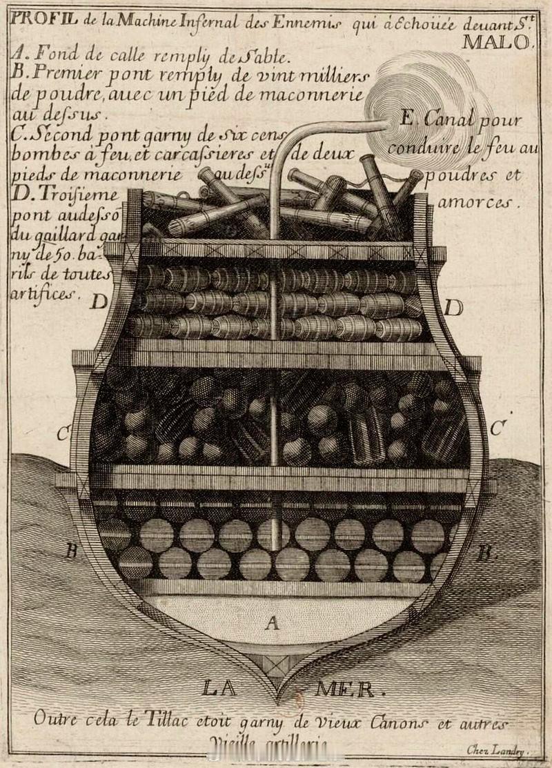 历史上的今天 1693年11月29日,正值九年战争(奥格斯堡同盟战争)期间,英国准将约翰·本鲍(John Benbow)试图对法国著名海盗据点圣马洛发动一次重击。他发射了一枚“地狱机器”——一艘装满炸药的火船,旨在摧毁城墙并摧毁这个破坏英国海上贸易的海盗基地。然而,炸弹提前爆炸,仅造成轻微破坏。爆炸的冲击波震动了整个城市,打碎了大量窗户,一些酒桶引发火灾烧毁了一栋房屋,但没有造成任何人员伤亡。当地传说中,唯一的牺牲是一只流浪猫,当地人为了讽刺这次英国人失败的进攻计划,在该地命名了一条“跳舞猫街”(Rue du Chat-qui-Danse)。法兰西的故事历史那些事