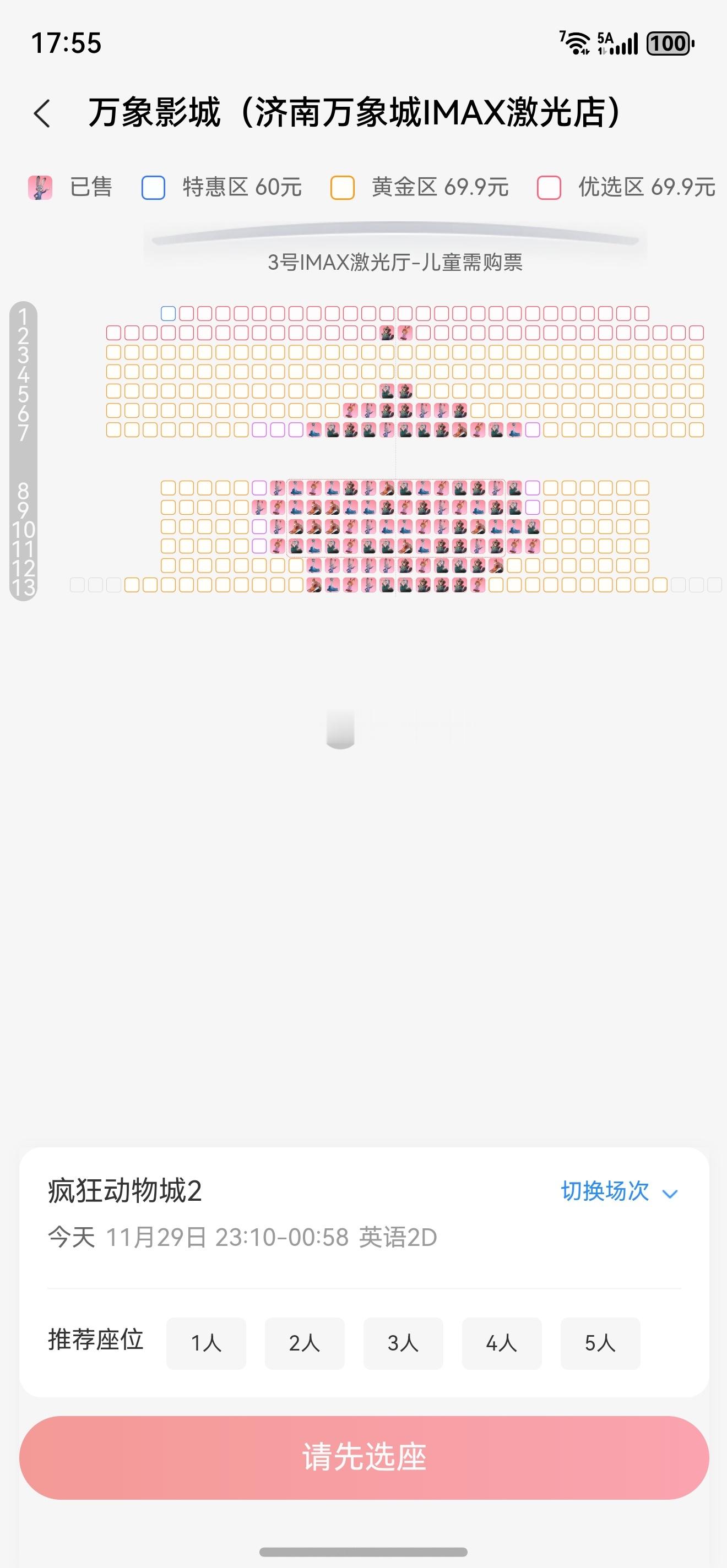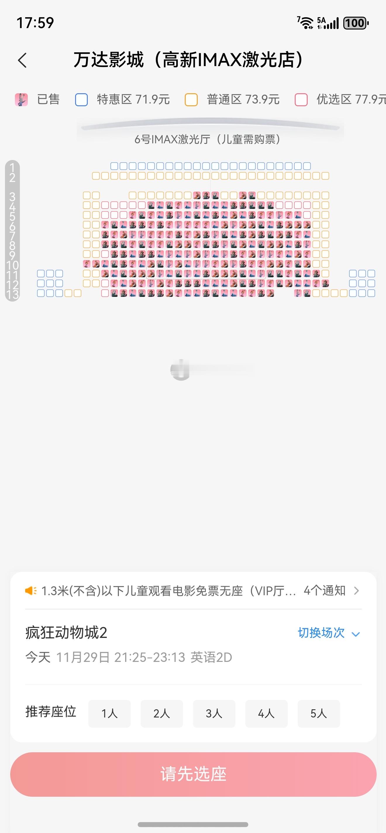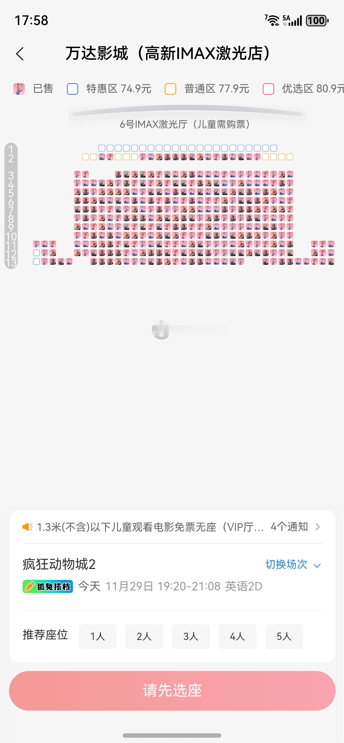 疯狂动物城2票房快13亿了,周末人爆多白天IMAX 2D英语很多场都很满,剩下的都是不太好的位置,要看只能去看晚上11点场疯狂动物城