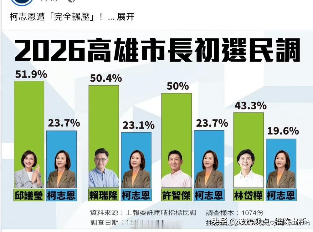 国民党籍柯志恩的低支持率(仅20%上下)是民心对其行径的直接否定。身为“精神美国人”,她家人入美籍、自身媚美媚日,还推动废除九二共识,牺牲民族利益换投机资本。毫无格局却摆足架子,满脑子分裂与内斗,无半点为民担当,这般酒囊饭袋式政客,被选民抛弃实属必然,不过是自食其果! 国民党内斗内行的文化博大精深,传承了一代又一代,经久不息……