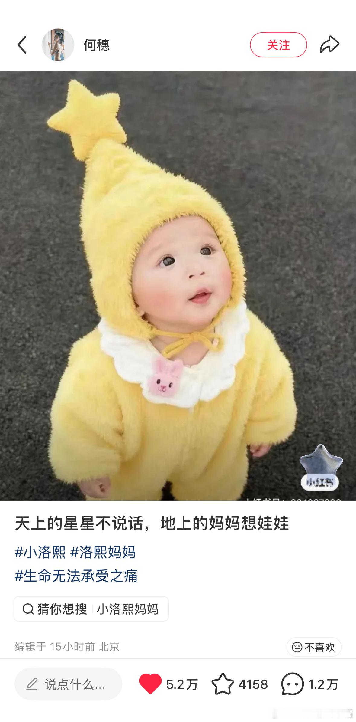何穗为小洛熙发声超模何穗在社交平台为宁波女婴小洛熙医疗纠纷事件首次发声,以一句:天上的星星不说话,地上的妈妈想娃娃,唤起全网对真相的追问。