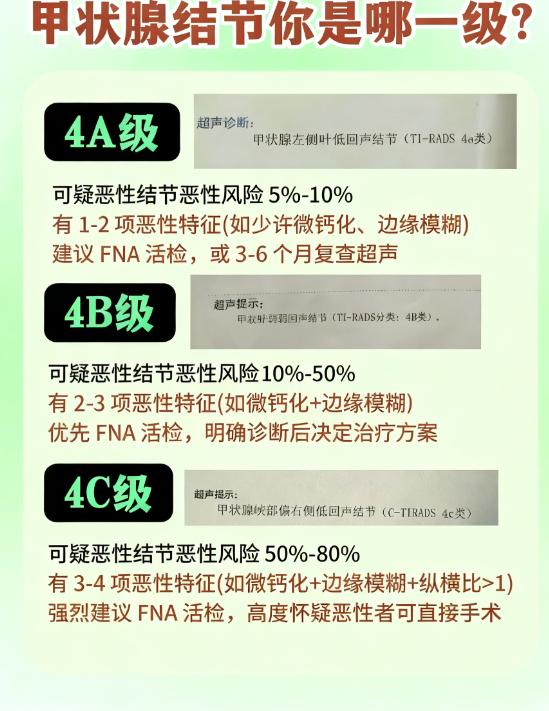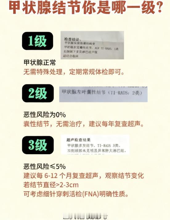 甲状腺结节别慌!带你看懂分级+应对方案 查出甲状腺结节,先不要慌,也不要自己在那里妄加揣测,一定要找专业医师进行评估,不管处于哪个级别,都一定要积极应对。