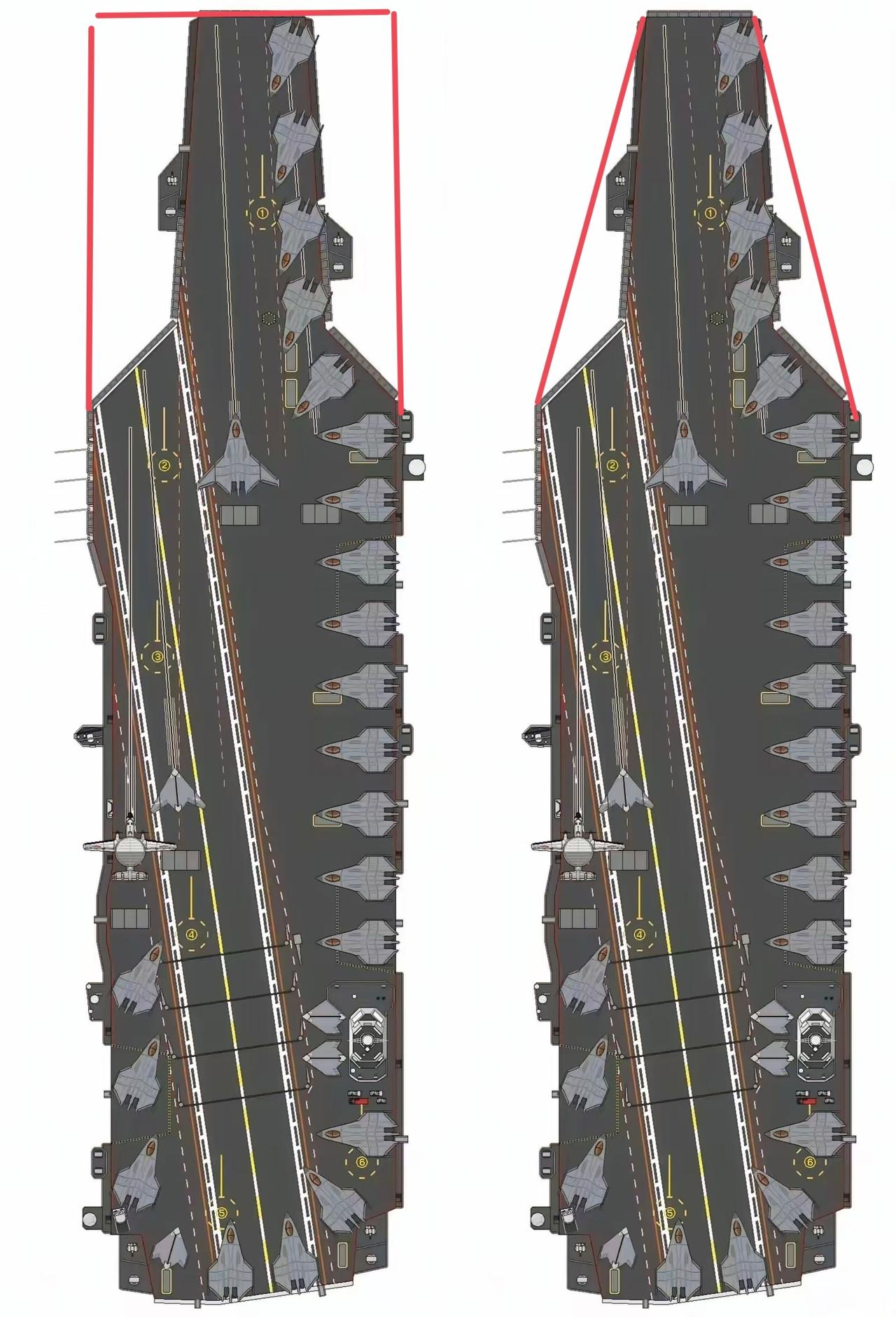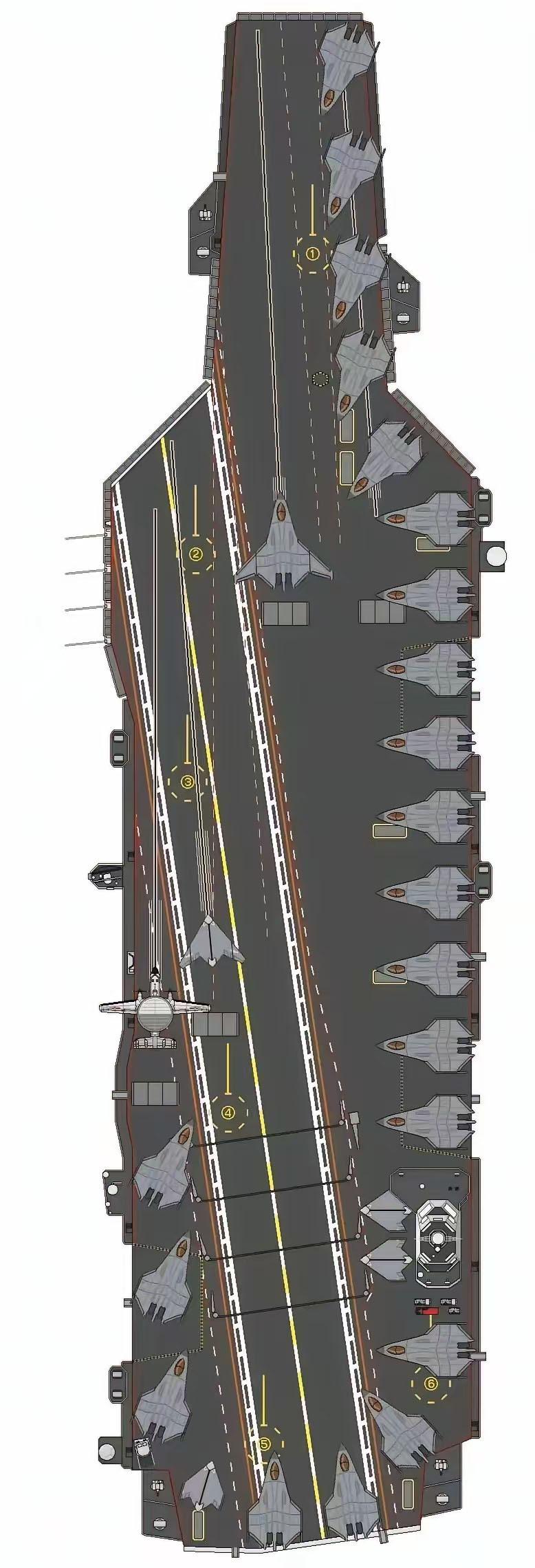 为什么现代航母要做成不规则的甲板? 现代航母做成不规则的斜角甲板,核心是为了提升作战效率而非单纯追求甲板面积,这是经过实战验证的最优设计 。 早期直通式甲板虽看似规整、面积连贯,但舰载机起飞和降落得共用一条跑道,没法同时作业,作战效率极低。 比如中途岛海战中,日军航母就因要先回收返航战机,导致待起飞战机延误,陷入战力真空 。 而且喷气式战机上舰后,若降落时没钩住拦阻索,很容易冲向舰艏停放的战机,引发严重事故 。 不规则的斜角甲板能把甲板分成两个独立作业区,前部直通甲板负责舰载机起飞,斜向的甲板专门用于降落 。