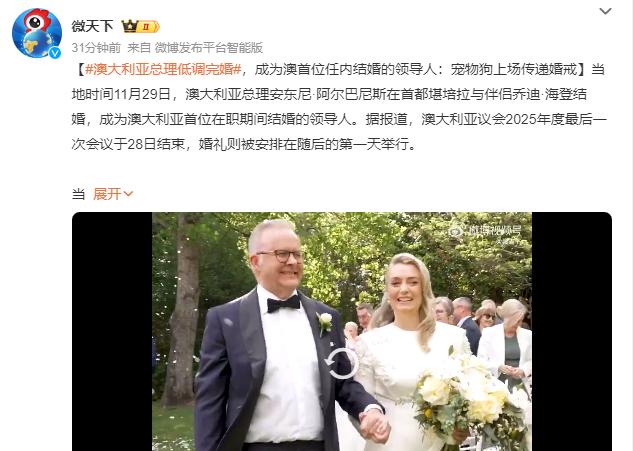 11月29日,澳大利亚总理和女友举行婚礼,婚礼现场非常低调,仅有少数人参加! 从
