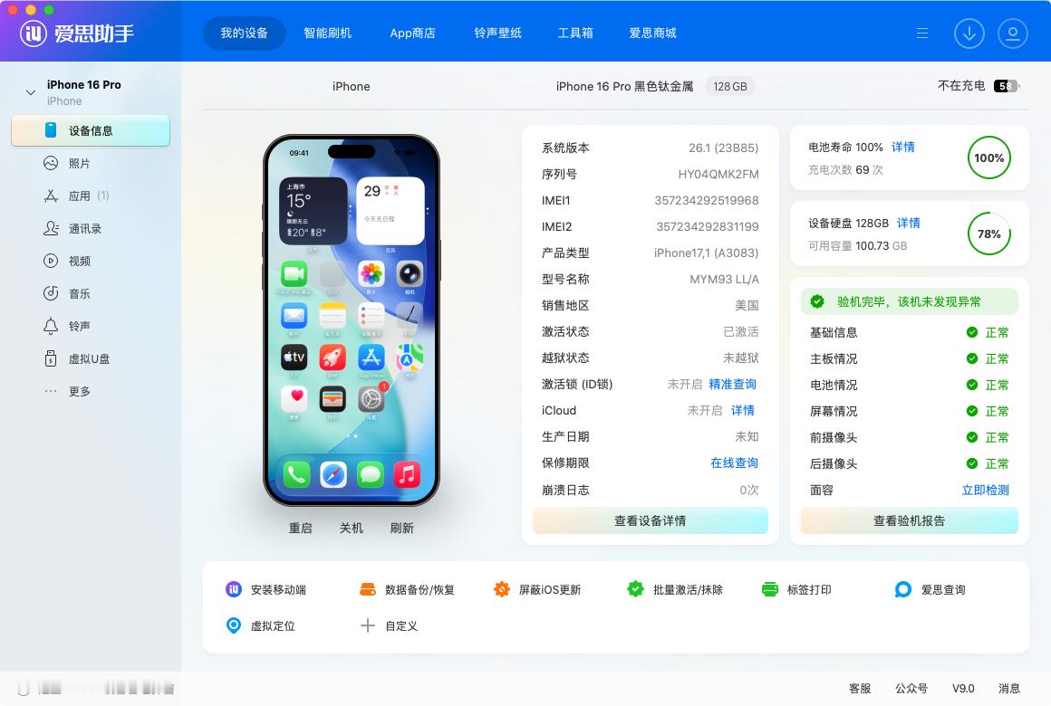 最新回收100电的16Pro美版无锁 128G 成色好 充电仅69次 双卡全网通