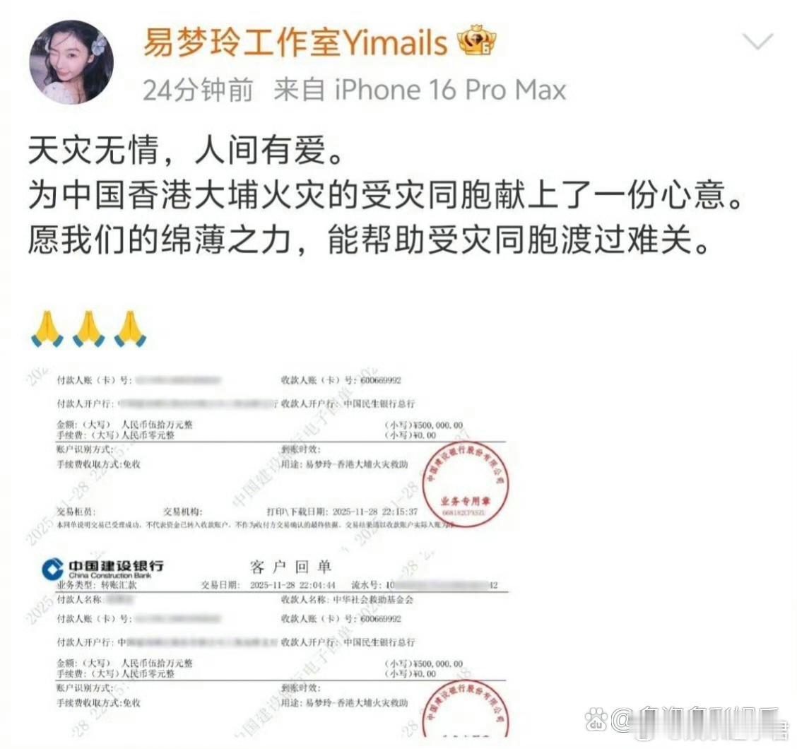 易梦玲好有心,大方向大埔火灾捐款100万!与早就成名的明星捐款数量相同!