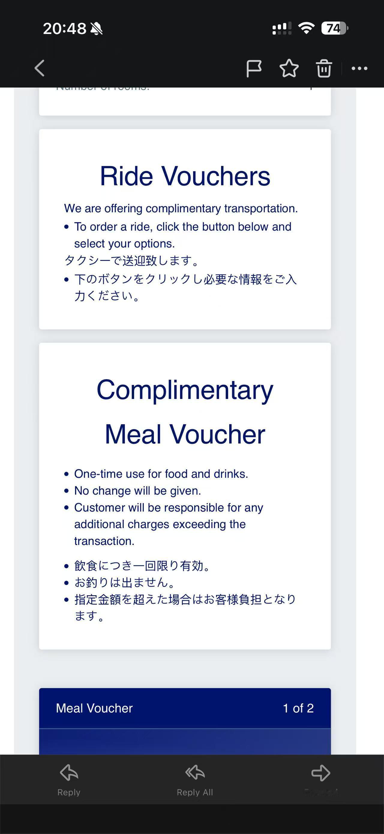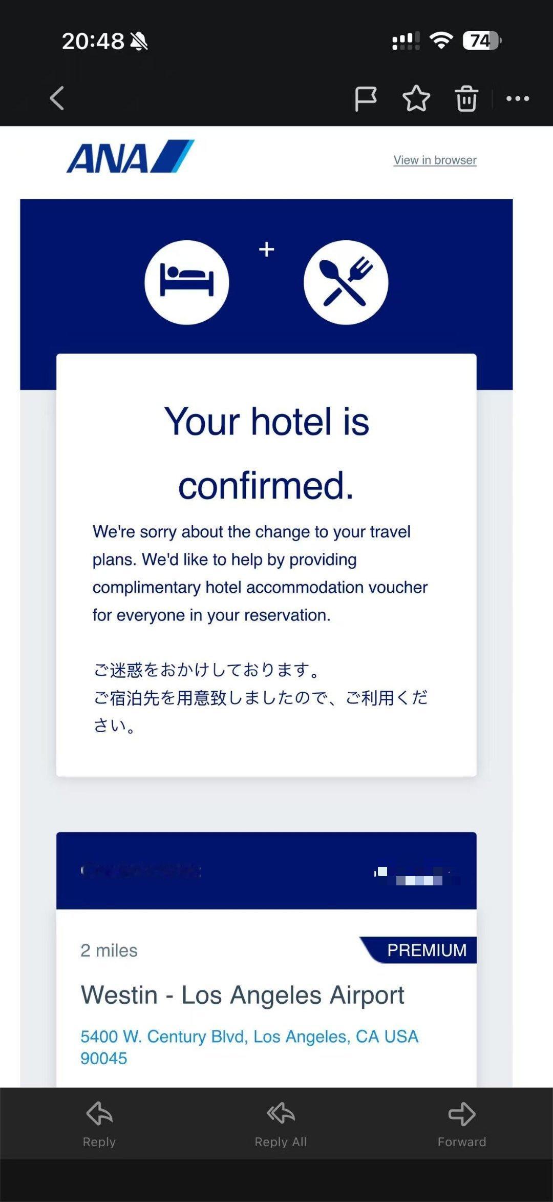 航班延误,记得看下自己有没有理赔的保险啊。前几天从LA回来,延误了8小时,好久没有延误这么久了。几乎收到延误通知瞬间,航司就把酒店&餐券选择发来了,提供一晚过夜酒店,外加60美金餐费。餐费可以在机场吃饭花掉,也可以在酒店吃饭,据说还可以充到星巴克账户。落地后,又触发了信用卡被动技能,赔了2000块。出门前,我还买了旅行保险,又赔了300这是我近期理赔最多的一次了~前几年好像最久一次赔了4000延误险