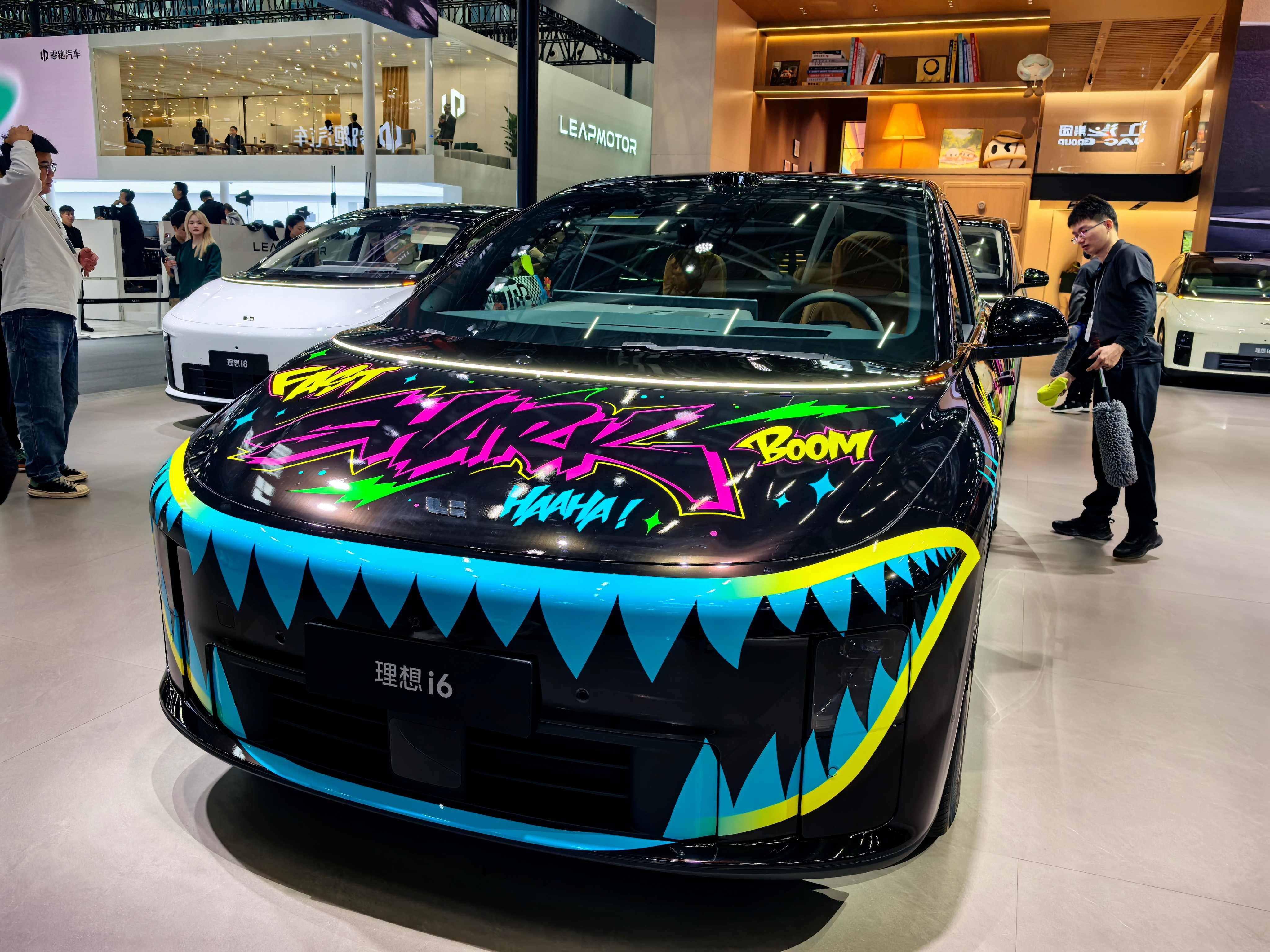 群里看到的L9涂装,很有特色:黑色车身,结合浅色马里奥,远看像拉花,近看才能发现角色,这就让我联想到理想i6的鲨鱼涂装,非常具有辨识度