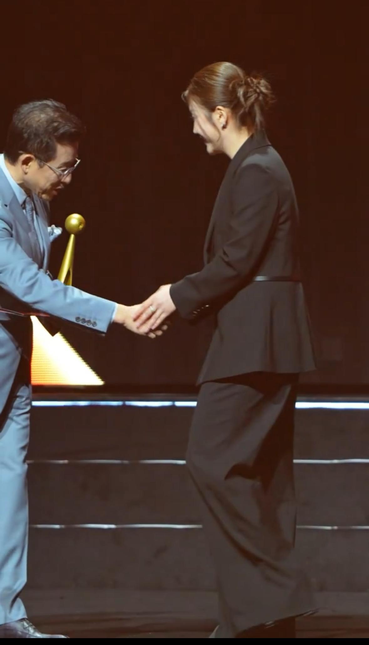 陈梦太飒了,黑色西装,走路杠杠的,高跟鞋,这可真是大女主,全面发展,青岛女孩,三十而立,事业蒸蒸日上,领奖了! 我梦姐握手都是双手接握,素养真好,很懂人情世故,超级尊重前辈,又甜又飒! 这套太适合陈梦了,很干练很帅,这气质,这气场嘎嘎棒,还很优雅,一点不突兀,这成长太快了,祝福🙏,祝贺🎉!