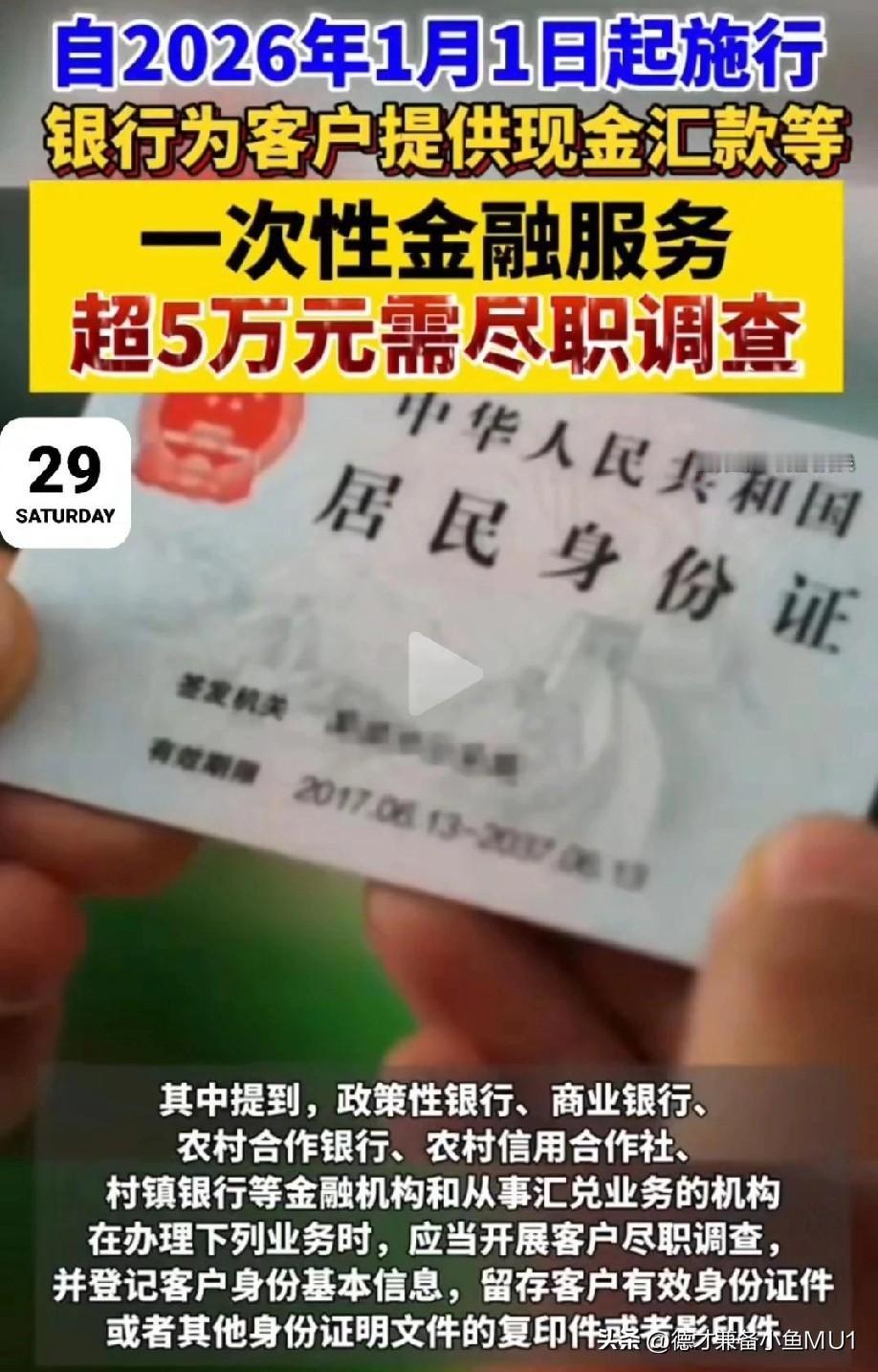 11月28日,中国人民银行、国家金融监督管理总局、中国证监会三部门联合发布《金融机构客户尽职调查和客户身份资料及交易记录保存管理办法》。该《管理办法》将于2026年1月1日起施行,删除“个人存取现金超5万元需登记资金来源”这一规定,本就不合理,早该取消!存取自由不应只是口号。老百姓那点救命钱,与洗钱毫无关联。对动辄百万千万的大额进出账户进行重点监管,才是必要之举。 这个新规十分实用!既无需再为取5万以上现金反复登记,又避免了“一刀切”的繁琐,既方便了普通人用钱,又未放松风险把控,真正将便民落到了实处。存取自由是法律赋予公民的权利,任何单位都不能无故设置障碍。守法需国家相关部门带头,而非仅要求公民单方面守法!共同维护法律尊严才是正确选择。 很多人说是那个律师立了大功,实际上征求意见稿8月就已公布,当时就取消了5万元以上取款登记的要求,律师投诉只是时机凑巧罢了。