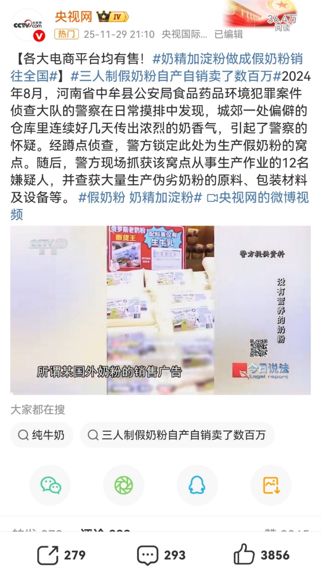 假奶粉 奶精加淀粉想起来当年的“三鹿毒奶粉”事件……