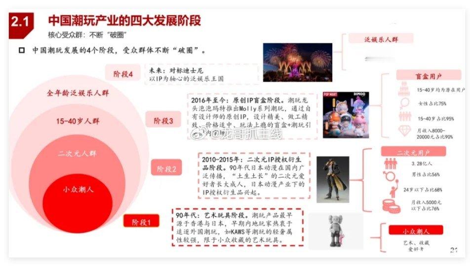 千亿赛道,潮玩研究! 六部门最新政策,到2027年我国将形成智能网联新能源汽车、智能家居、消费电子三大万亿级消费领域,并配套十大千亿级消费热点。其中1个千亿消费热点就是潮玩!一. 潮玩为何兴起?1.满足感性与心理需求.,核心价值在于触动消费者的情感神经,满足年轻人对个性化表达和情感共鸣的需求. 报告调研了1500位消费者,发现几个有趣现象:超六成消费者经常买盲盒和手办,但他们的动机很理性——超半数人是为了收藏和展示。这说明潮玩不仅是玩具,更是生活方式的表达。超80%的用户单次消费在200元以上,年均购买3-10次。这届年轻人,在潮玩上真是舍得花钱!2.社交属性与圈层认同,潮玩不仅是收藏品,更是社交符号。年轻人通过分享潮玩融入特定圈层,获得归属感。3.潮玩其实是一个文化的载体,比如类似于故宫文创、哪吒的形象,这种文化现象引起了大家的共鸣。二.潮玩历史起步期(20世纪末-21世纪初)香港设计师Michael Lau推出的“Gardener”系列公仔。探索期(2010-2015年)迎来转折点,泡泡玛特等企业开始将潮玩商业化,日本Sonny Angel带火的盲盒玩法彻底改变了游戏规则。成熟期(2016年至今)则是爆发阶段,泡泡玛特将Molly引入内地,引爆全民收藏热,潮玩从小众爱好变身大众消费。三.潮玩现状1.消费群体。21-35岁的“大龄儿童”!其中一线和新一线城市用户占比超八成,月收入6000-10000元的中产群体占37%。2.2024年中国IP潮玩消费市场规模已达678亿元,预计2027年将突破1000亿大关!这增长速度简直堪比坐火箭!更让人惊讶的是,2020-2024年复合增长率高达13.8%,要知道今年消费放缓!四.行业趋势1.高毛利率 60%以上 高ROE 30%以上 轻资产+高周转 2.出海发展:出海成为新蓝海。欧美、日本、东南亚市场各具特色:欧美偏好艺术玩具,日本钟爱扭蛋手办,东南亚青睐盲盒迷你版3.数字化则是另一个赛道。数字潮玩结合区块链NFT,赋予虚拟藏品稀缺性五.风险1.年轻人的取向和潮流的变化。2.拉布布这种完全就是意外爆火。未来这种“意外”是否可持续平台不能分析公司,我只能谈谈行业,你怎么看?