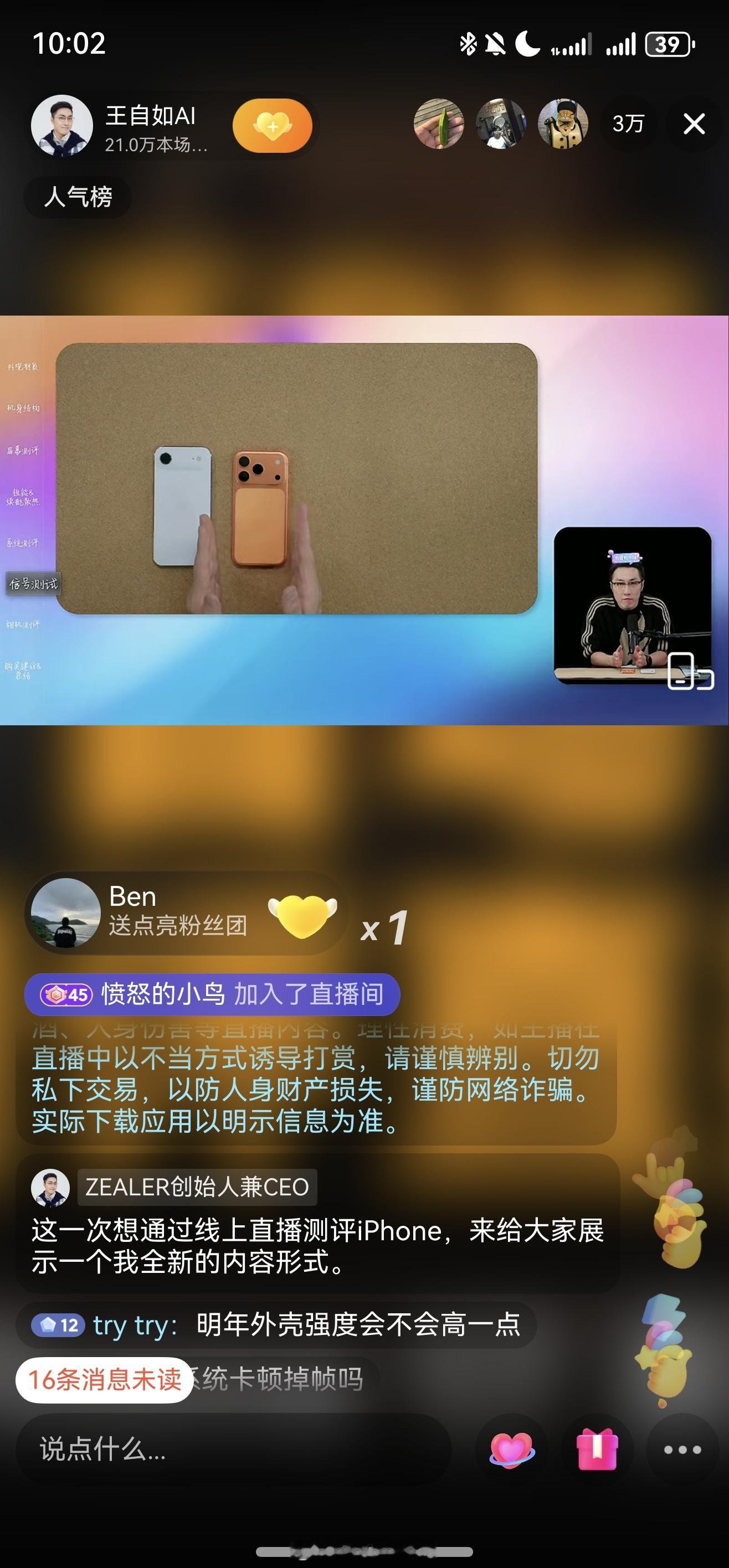 今晚看了一半王自如直播测评iPhone,2小时40分钟,没有稿子,可以说是直播测评第一人,王者归来。竟然有点期待下一期了