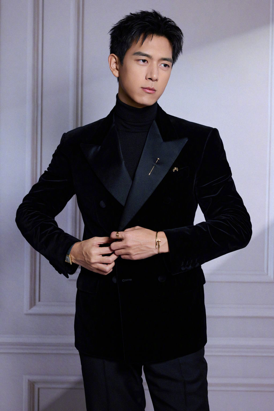 李现inCartier📷今日品牌活动造型,经典的丝绒西服套装,卡地亚珠