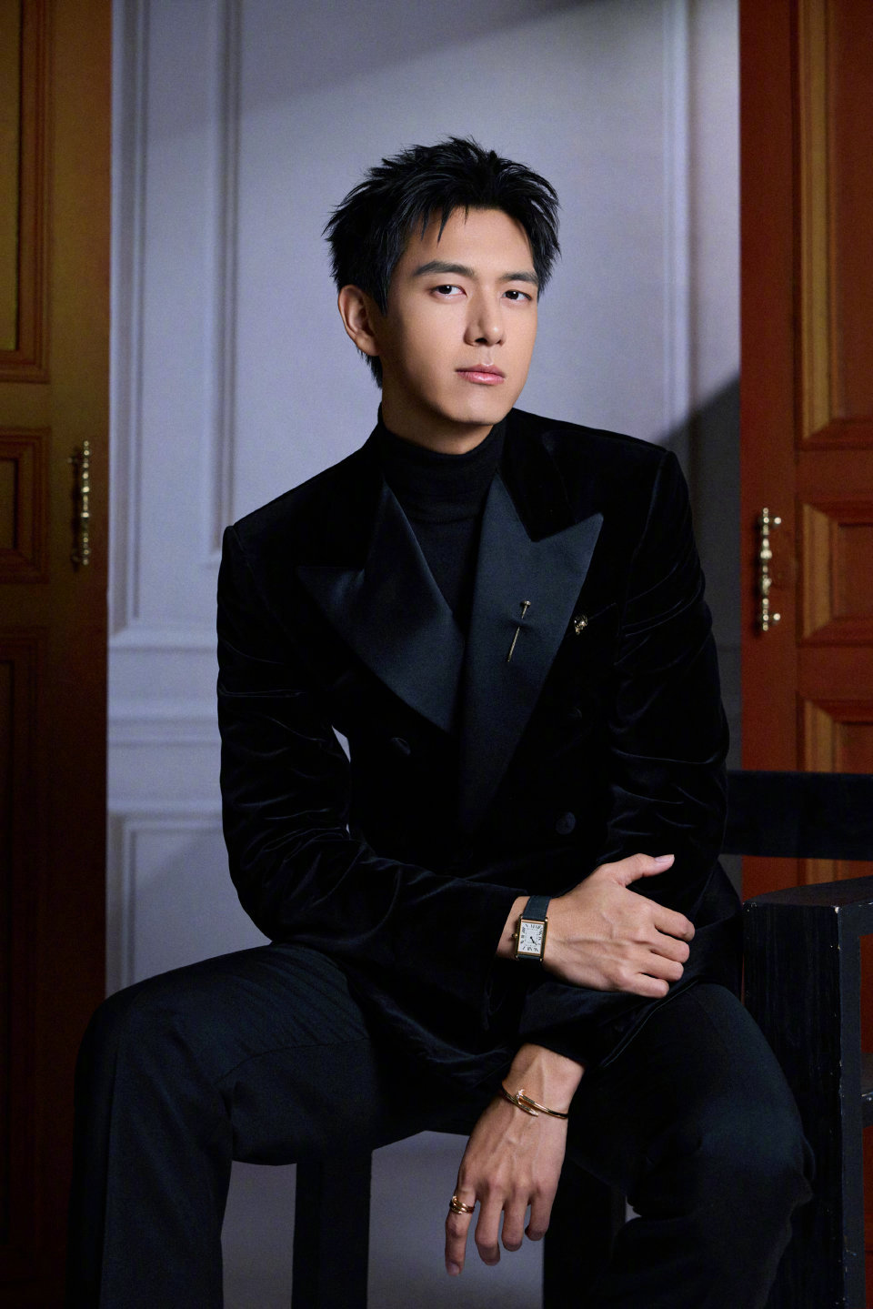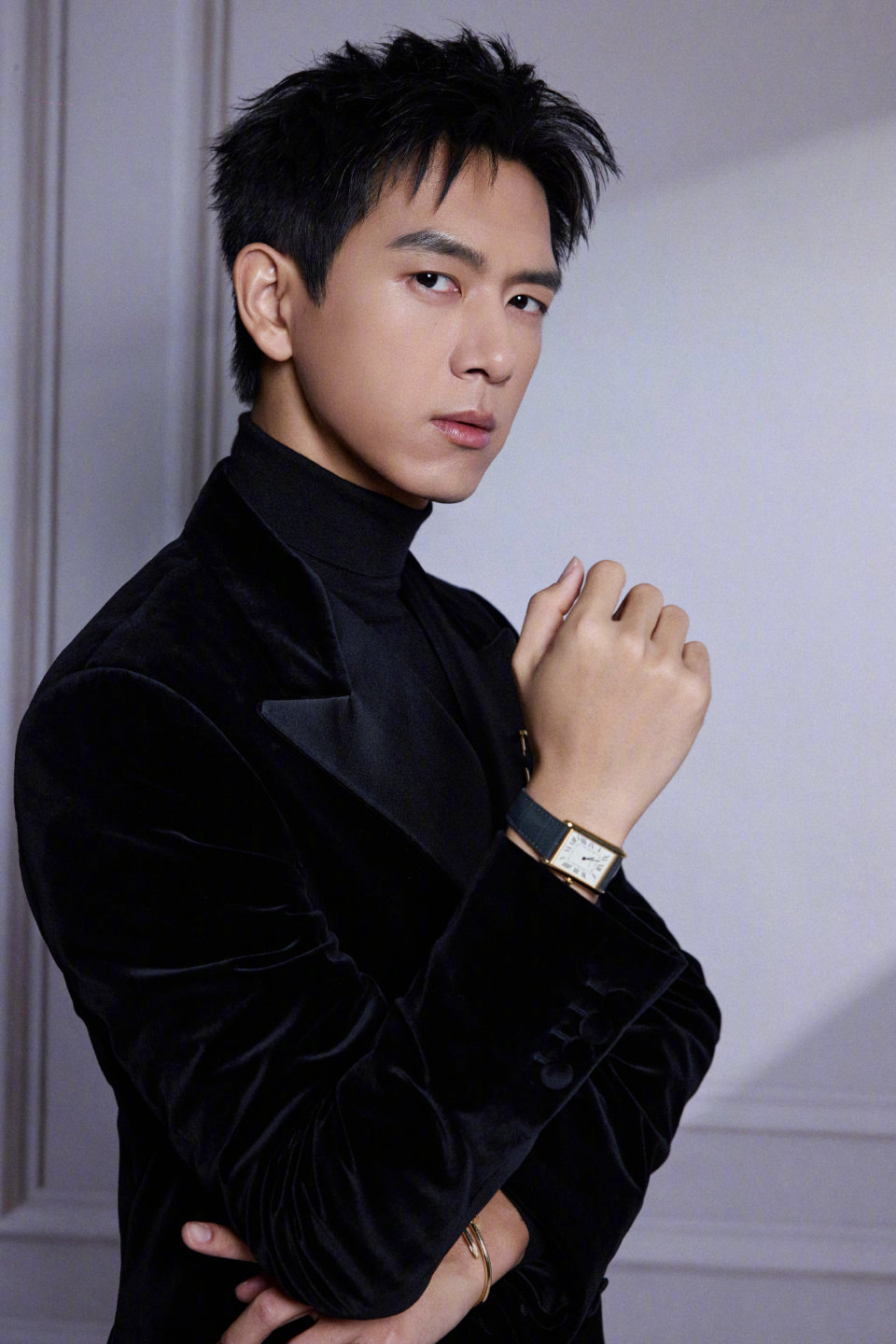 李现 in Cartier 📷 今日品牌活动造型,经典的丝绒西服套装,卡地亚珠宝及腕表点缀细节,沉稳有型的绅士格调。