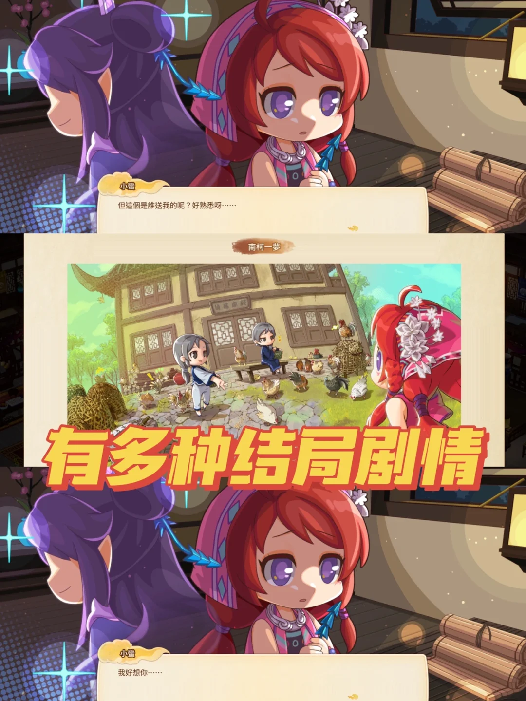 💬这种模拟经营客栈的游戏,我真的太喜欢了。刚出我就迫不及待玩了一整天,在里面好好开发菜品,发展客栈的同时,还时刻关注着角色与剧情,生怕有错漏的。前期的客栈和后院的养殖玩法,是我非常喜欢的,后面随着客栈升级,我们还可以安排里面的角色约会谈心,增加他们的好感度。我第1️⃣周目打了个“南柯一梦”的结局,剧情真的有点“刀”[哭惹R]。喜欢这种游戏类型的朋友们不要错过这款游戏啦~