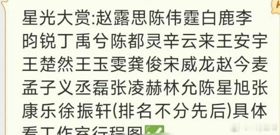 网传2025年星光大赏名单