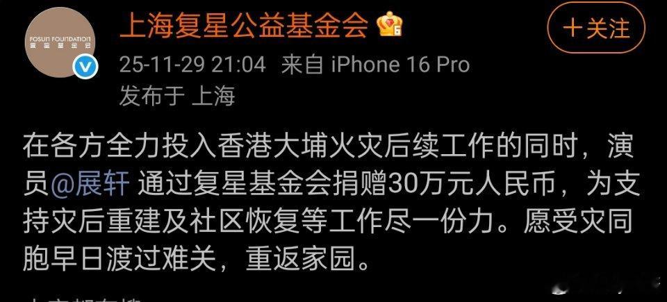 展轩 捐款30万元支援香港!!!展轩