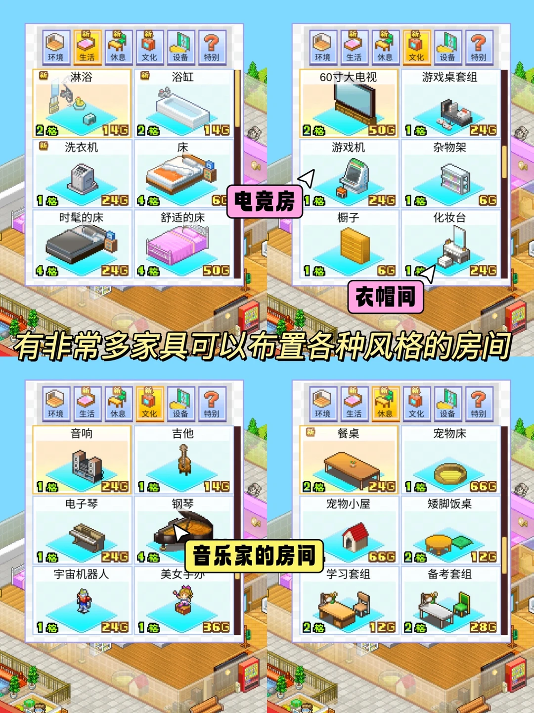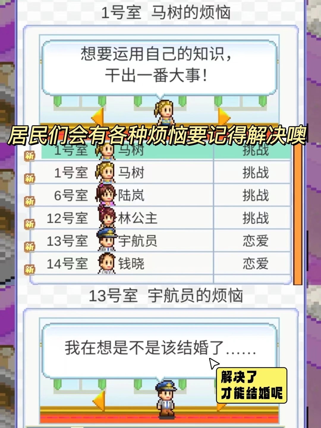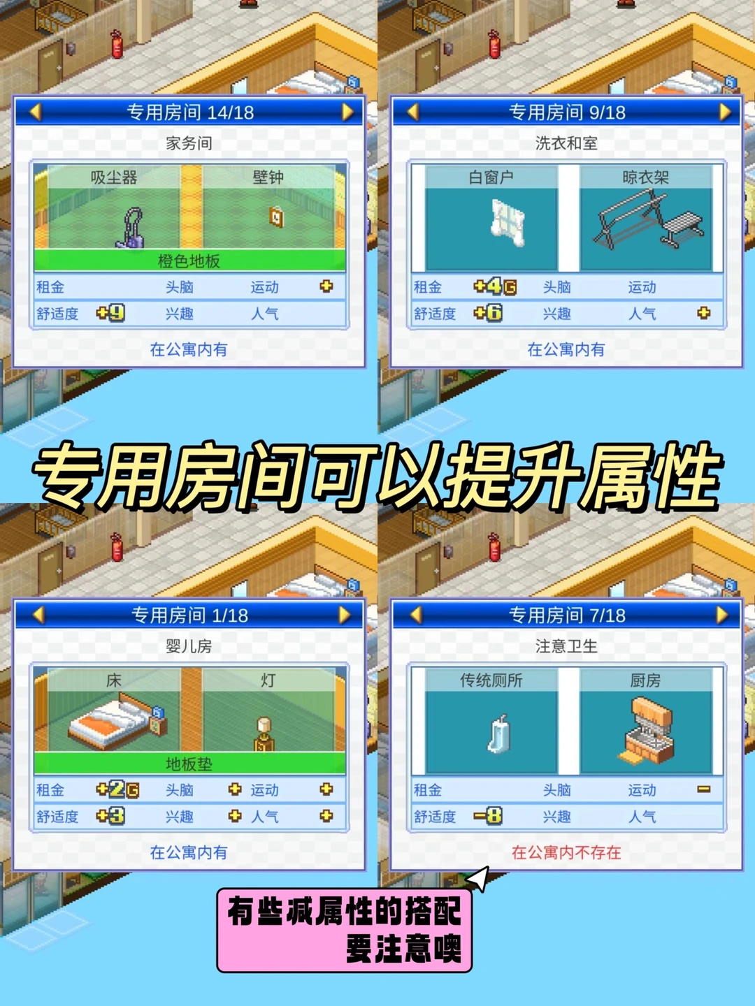 💗童年里谁没玩过开罗游戏⁉️开罗的每一款游戏真的都太上头好玩了!最近我又重温了住宅梦物语,这款当房东的游戏真的太好玩了‼️因为我们当的可不是普通的房东,而是可以和居民们互动的房东,我们可以看着他们长大,帮他们布置房间,看着他们恋爱❤️生子,然后一步步发展的越来越好~这种高自由的游戏真的一玩就是一整天。