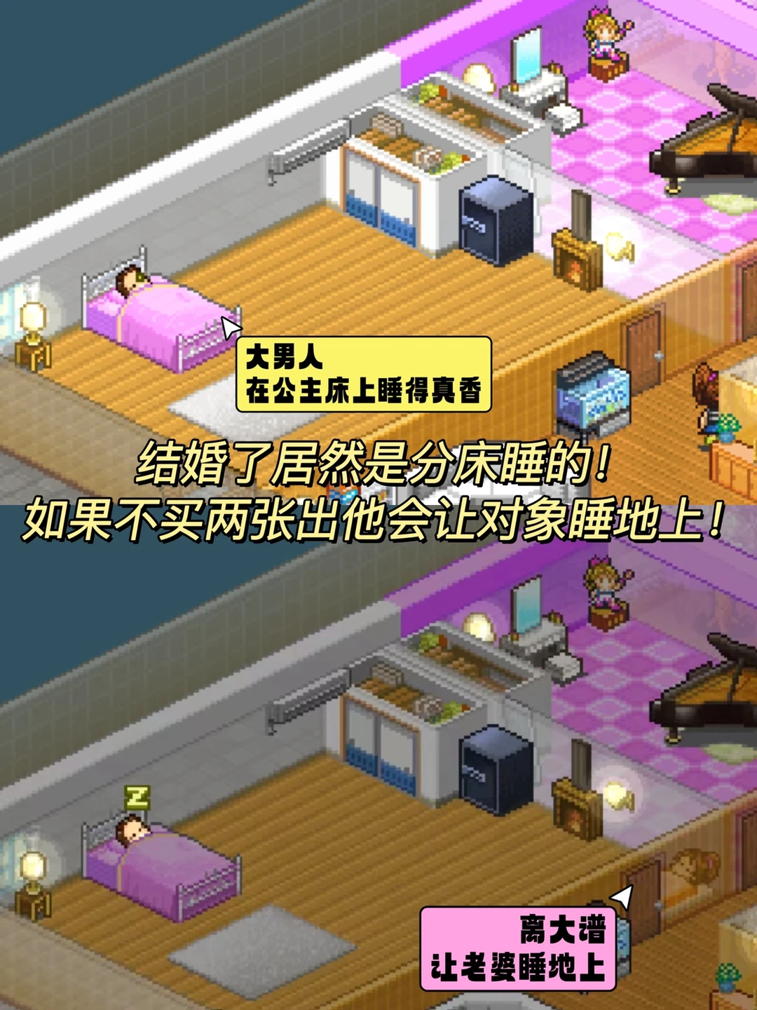 💝说实话我觉得这更像是一个有笑有泪的游戏,游戏里有各种让人觉得离谱搞笑的设定,比如结婚后男人睡在公主床🛌上,让他的老婆在地上打地铺,真的又好笑又好气。但是看到那些看着他们长大变老👴🏻的居民,和我们离别的时候又感觉很伤感。除去各种好玩的设定以外,这些更证明了,这是一款温暖的游戏,喜欢这种类型游戏的宝子们千万不要错过啦~