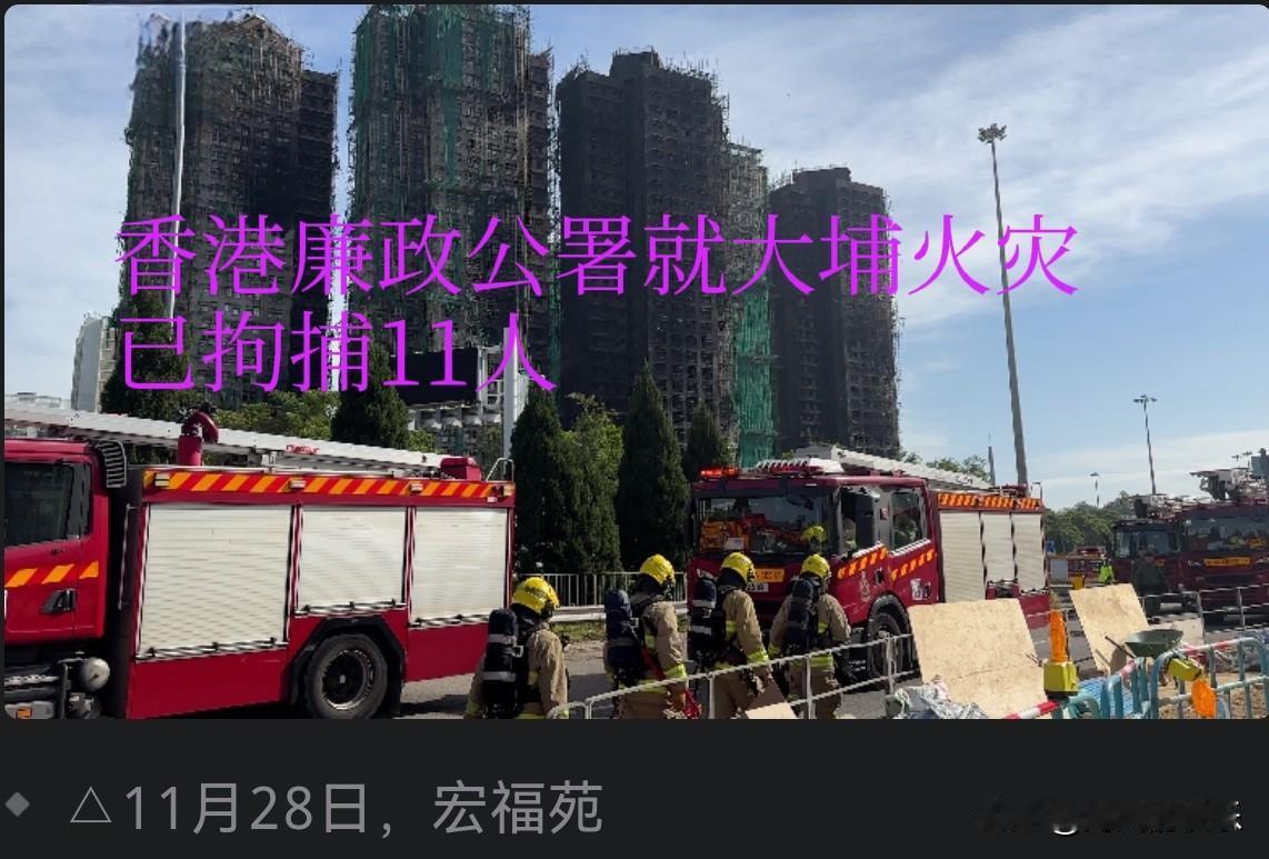 香港廉政公署就大埔火灾已拘捕11人 据媒体披露11月29日自香港廉政公署