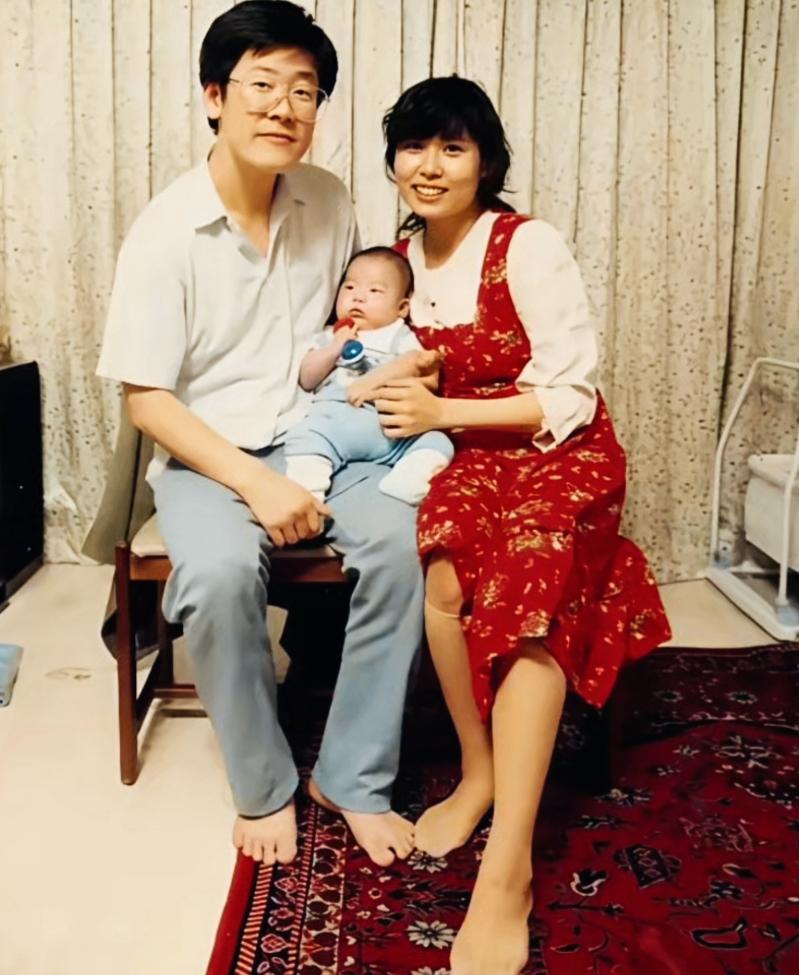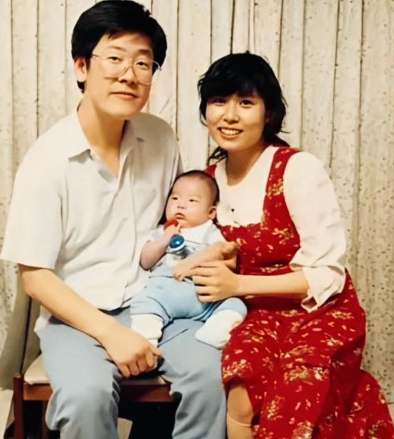 李在明年轻的时候,一家三口的幸福时光! 是不是非常的温馨!