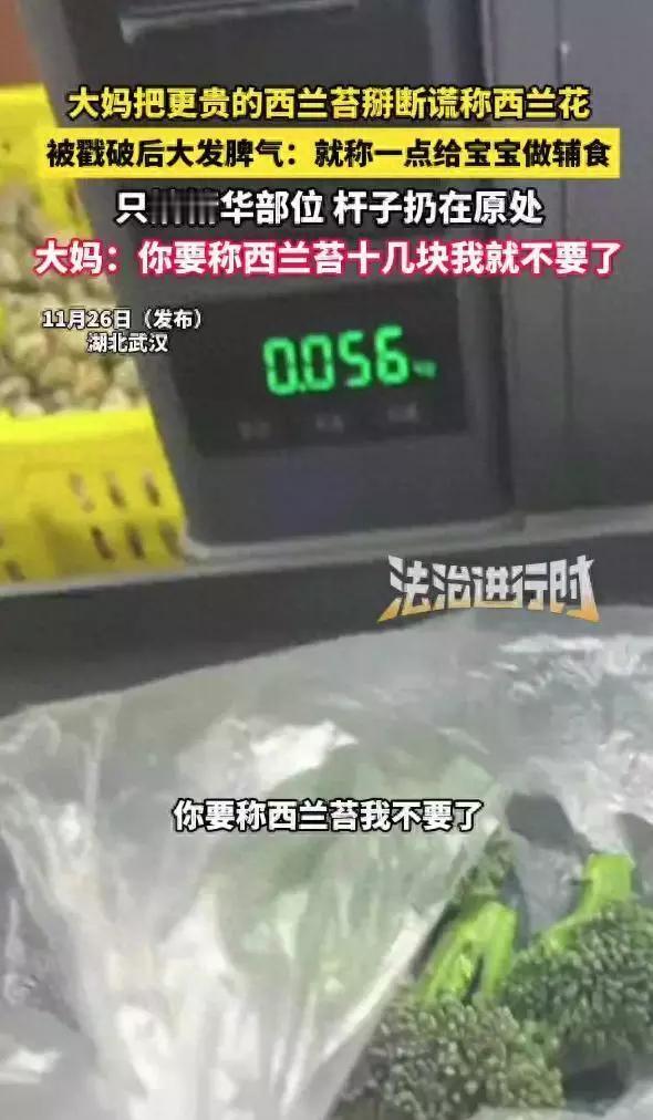给宝宝做辅食没错!可大妈掰断西兰苔骗称,真相扎心了? 武汉超市生鲜区,水灵的蔬菜刚上架,一位大妈就蹲在货架前“动手脚”——把脆嫩的西兰苔狠狠掰断,混进西兰花堆里,直言要按低价称重。这一幕被工作人员撞见,没想到大妈不仅不慌,反而大发脾气:“就称一点给宝宝做辅食!贵了我可不要!” 你有没有过这种感受?逛超市时总遇到有人破坏食材,却以“自家要用”为借口。西兰苔比西兰花贵近一倍,营养更丰富,确实是辅食好选择,但“掰断冒充”的操作,真的能给孩子做好榜样吗?家长是孩子的第一任老师,当着娃的面耍小聪明,传递的难道是“为了目的可以不讲诚信”? 更让人揪心的是,这一掰不仅毁了蔬菜,还伤了两个人的心。种植户起早贪黑培育数月,一粒种子长成成品要付出无数汗水;超市的人为损耗最终要么摊到定价里,要么由商家承担,其实是所有消费者在为少数人的自私买单。换作是你,看到辛苦种的菜被随意破坏,会觉得委屈吗? 有人说“不就几块钱的事”,可诚信从来都不是小事。今天能掰西兰苔,明天就可能有人捏软草莓、拆封零食放回货架,消费环境的公平,就是被这些“小事”慢慢侵蚀的。其实想吃好食材有很多办法,少买一点、问店员要折扣,都比耍小聪明体面,你觉得呢? 说到底,给宝宝最好的辅食,从来不是昂贵的食材,而是家长以身作则的诚信。那根被掰断的西兰苔,碎的不只是菜梗,还有最基本的规则意识。如果是你遇到这种情况,会当场制止还是默默走开?欢迎在评论区聊聊你的看法~热点话题 西兰花的价格