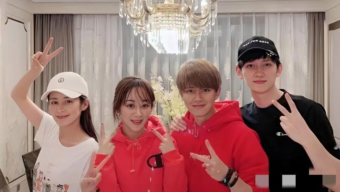 4星同框:我只认出了身着红衣,几缕秀发覆额的杨紫与穿黑衣戴黑帽,帅气逼人的马可,最左侧那位龙眉凤目的美女看着像是袁冰妍,另一位红衣金发男是谁?