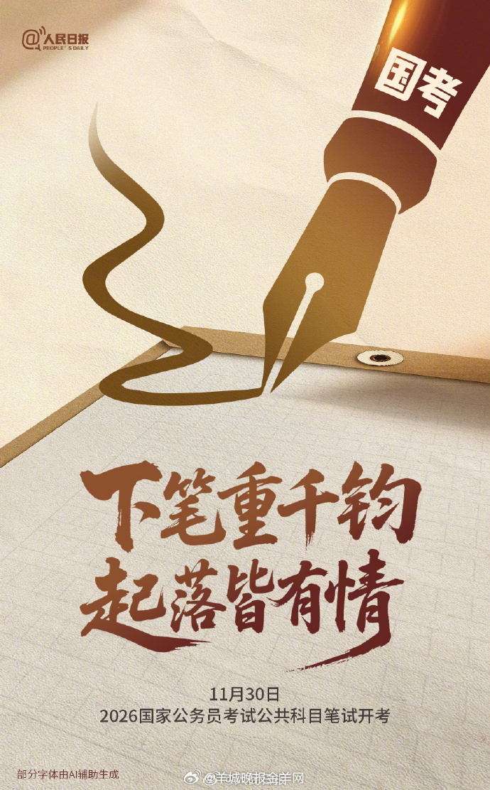 #2026年国考今日开考# #公务员考试# 【今天#2026国考公共科目笔试开考#,祝福考生】 #国考今天开考# 11月30日,2026国家公务员考试公共科目笔试开考。共有371.8万人通过了用人单位的资格审查。下笔重千钧 ,起落皆有情,奋力一搏,国考,加油! #为公考加油# #2026年国考371.8万人#