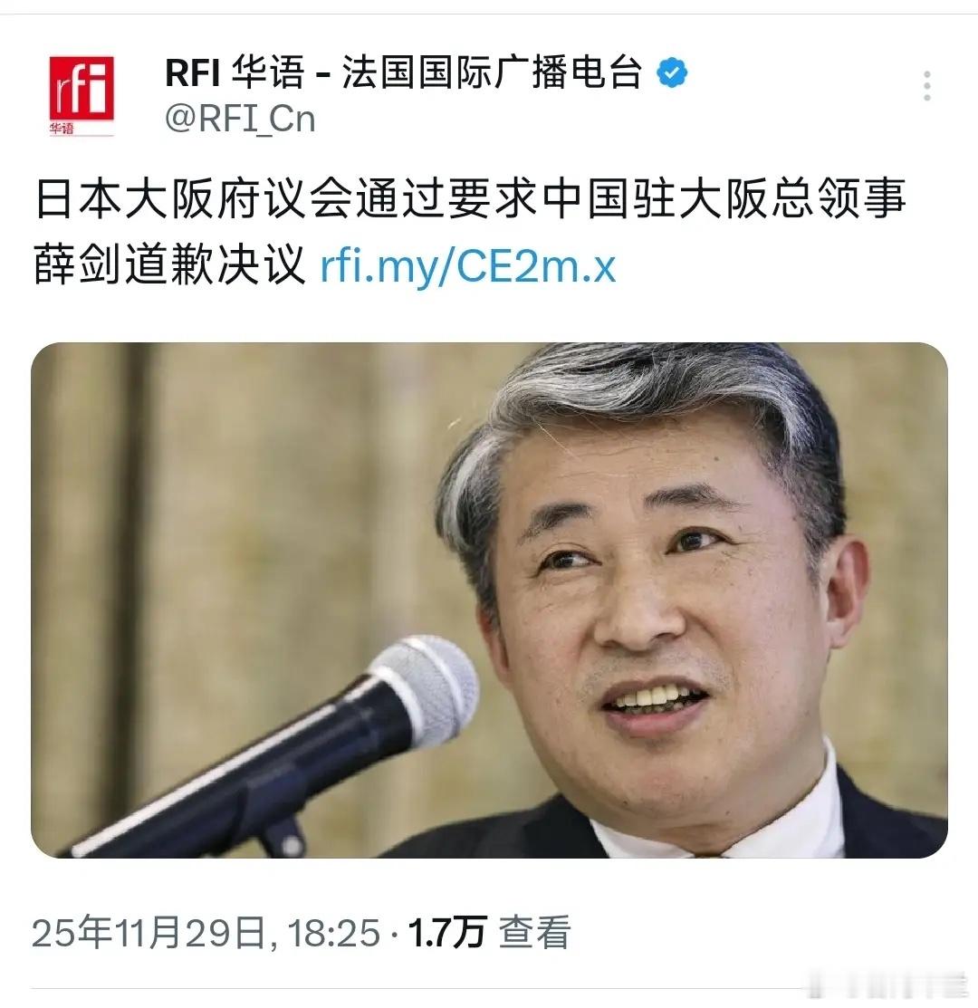 万万没想到,日本还没向中国道歉,居然要求中方向日本道歉,这简直是倒反天罡!在11月29日,法国国际广播电台报道称。日本大阪府议会通过要求中国驻大阪总领事道歉决议。说白了,这件事本身就是高市早苗发表了不当涉台言论在先,最该道歉的也应该是日本,而现如今日本却公然妄想要中方外交官道歉,这实属是颠倒黑白,荒谬绝伦。其实这也表明了,日本现如今已然做好了强硬到底的态度,但这样的行为,只会给中方提供一个师出有名的机会,对日本进行新账旧账一起算。说实话,日本的这波操作,就好比是一个人打了你一巴掌,你谴责对方几句,他还不乐意了,还要求你道歉,这不就是明摆着没事儿找事儿嘛。更何况,曾经在二战时期,日本在中国的领土上犯下了滔天的罪恶,现如今的日本人向中国道歉了吗?说到底,奉劝日本撤回不当言论,否则中方是必然会遵守“联合国宪章”,跟日本好好算算旧账的。