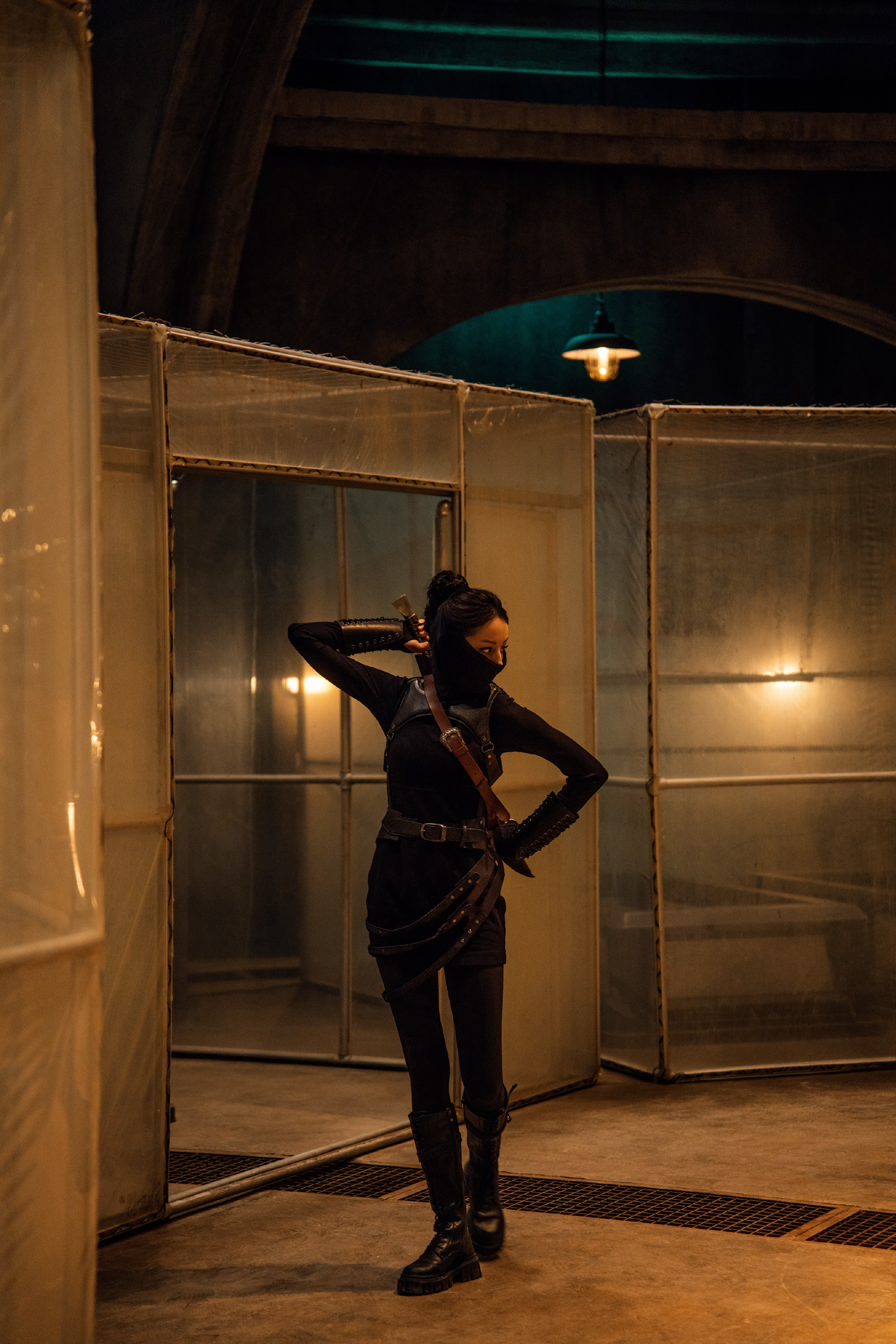 迪丽热巴黑衣蒙面高马尾迪丽热巴打戏又狠又帅,爱了爱了