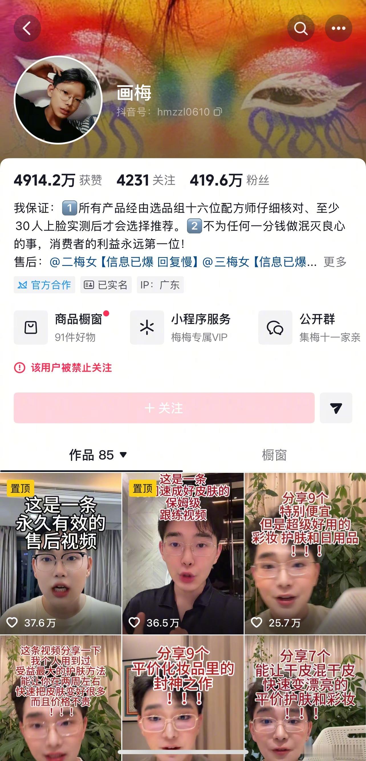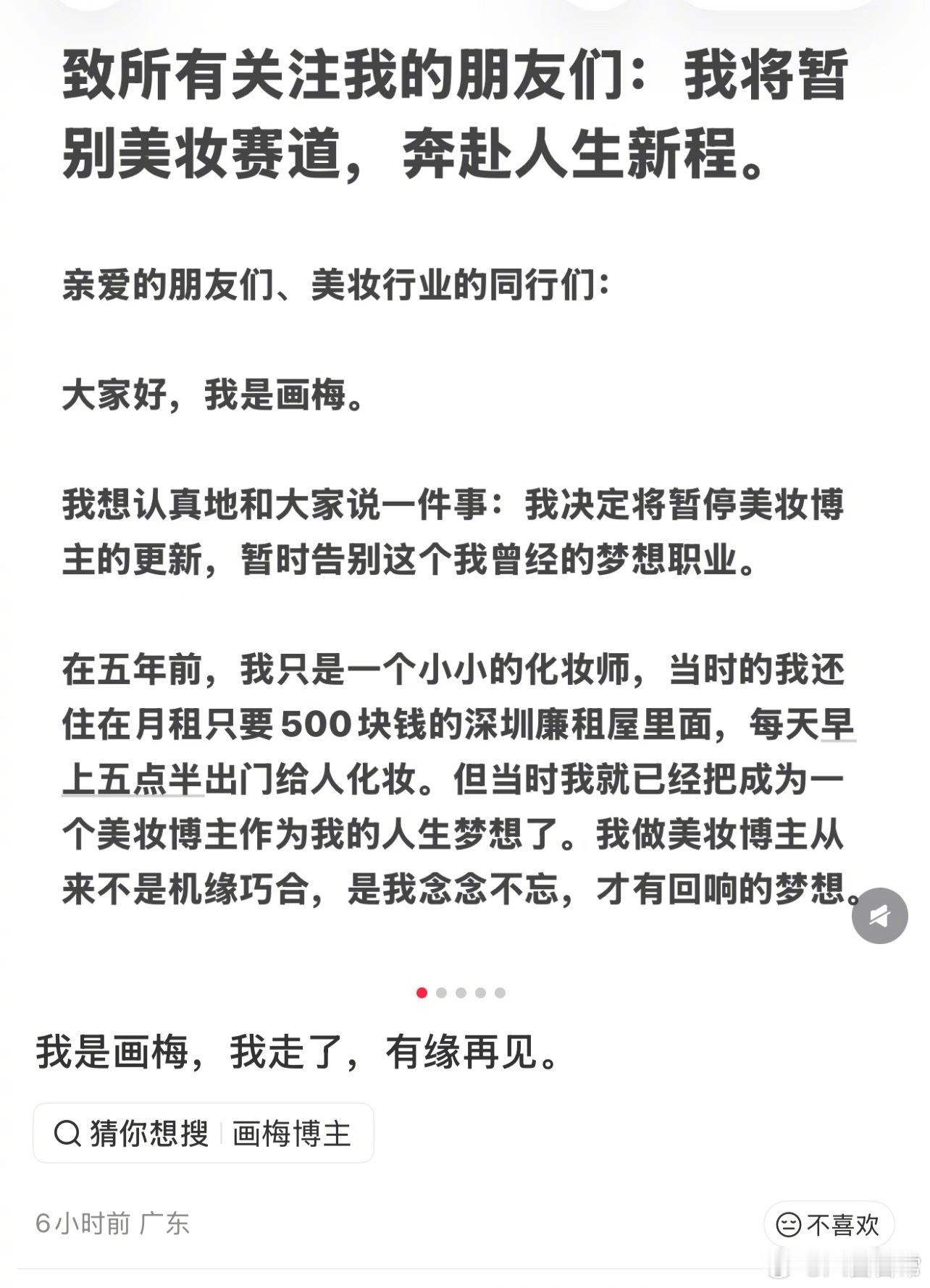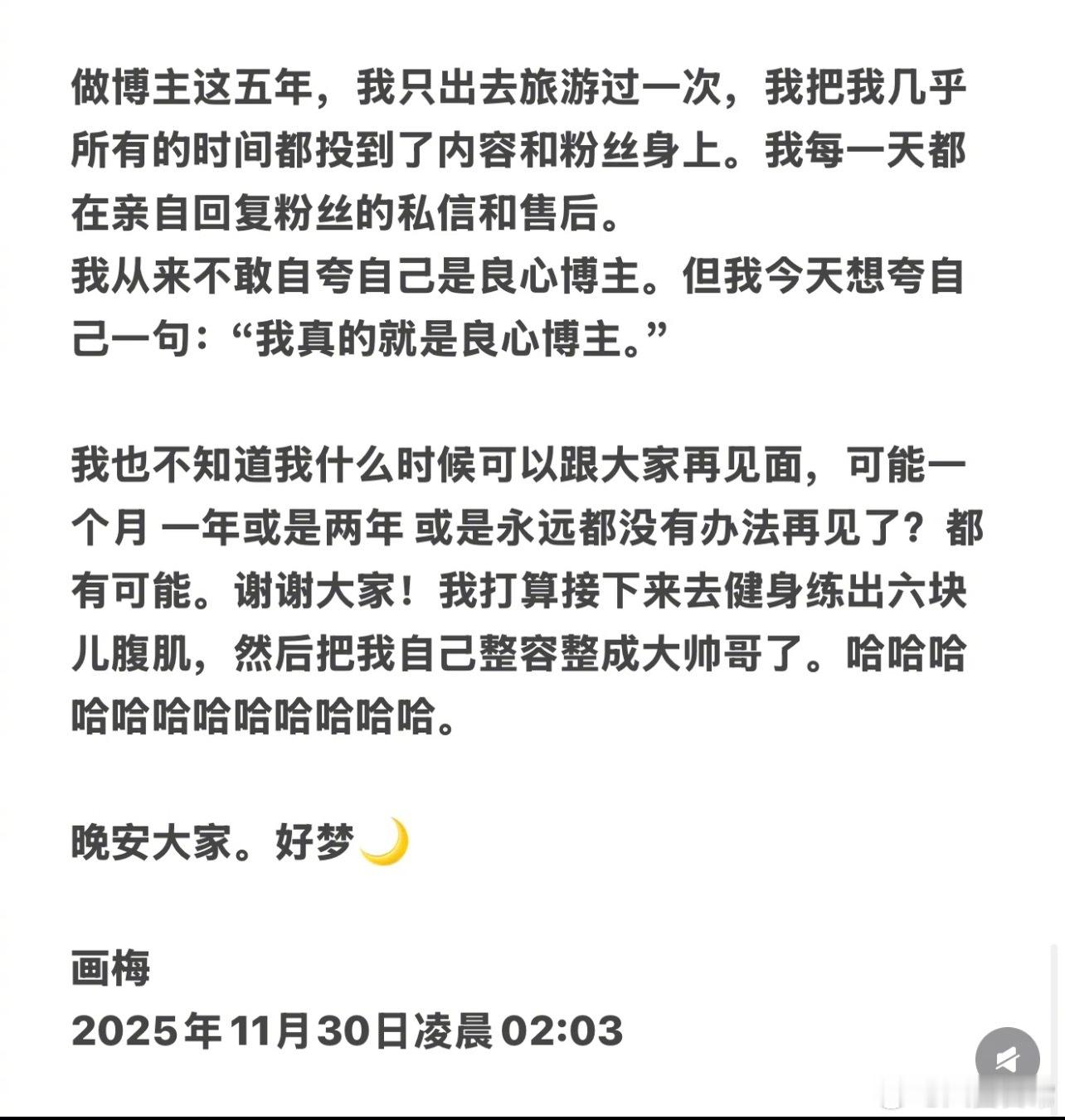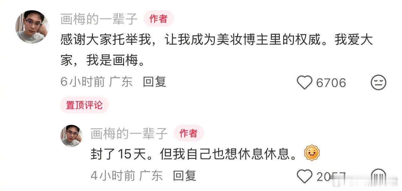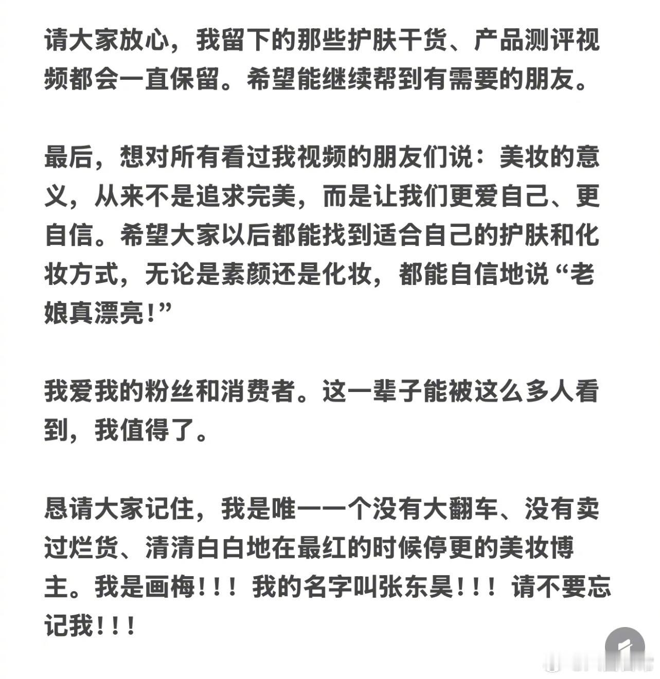 美妆博主画梅发文,将暂停美妆更新“我也不知道我什么时候可以跟大家再见面,可能一个月一年或是两年或是永远都没有办法再见了?都有可能”画梅退网画梅回应退网