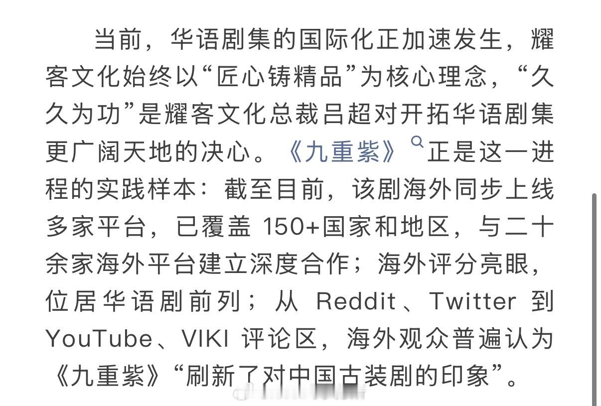 孟子义、李昀锐九重紫获亚洲电视大奖,该剧海外同步上线多家平台,已覆盖 150+国