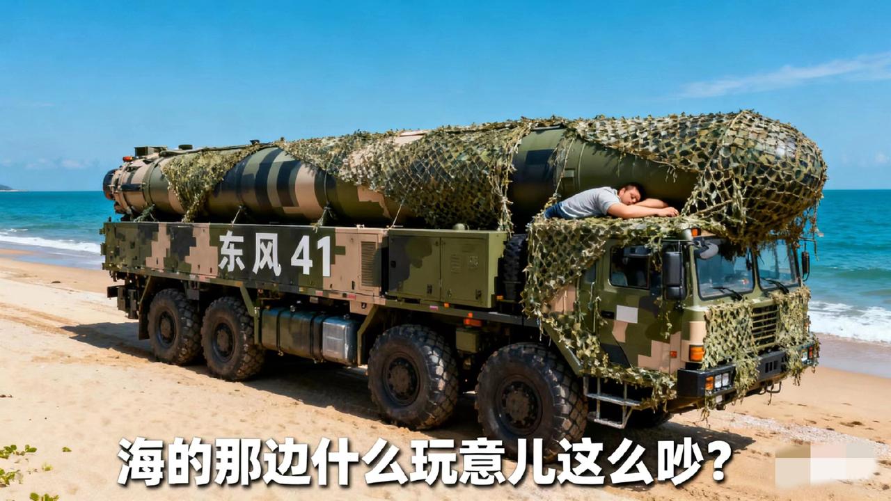 海的那边很吵,吵得东风41睡不好觉,就问北斗,什么玩意儿这么吵? 北斗告诉东风,那边吵着要去看蛙蛙,已经到110公里的地方了。 东风41伸了个懒腰,不睡了,说自己去海的那边看看! 于是,去了! 北斗没拦住,等了半小时不见东风回来,就跟着去看看。 海的那边什么都没了!