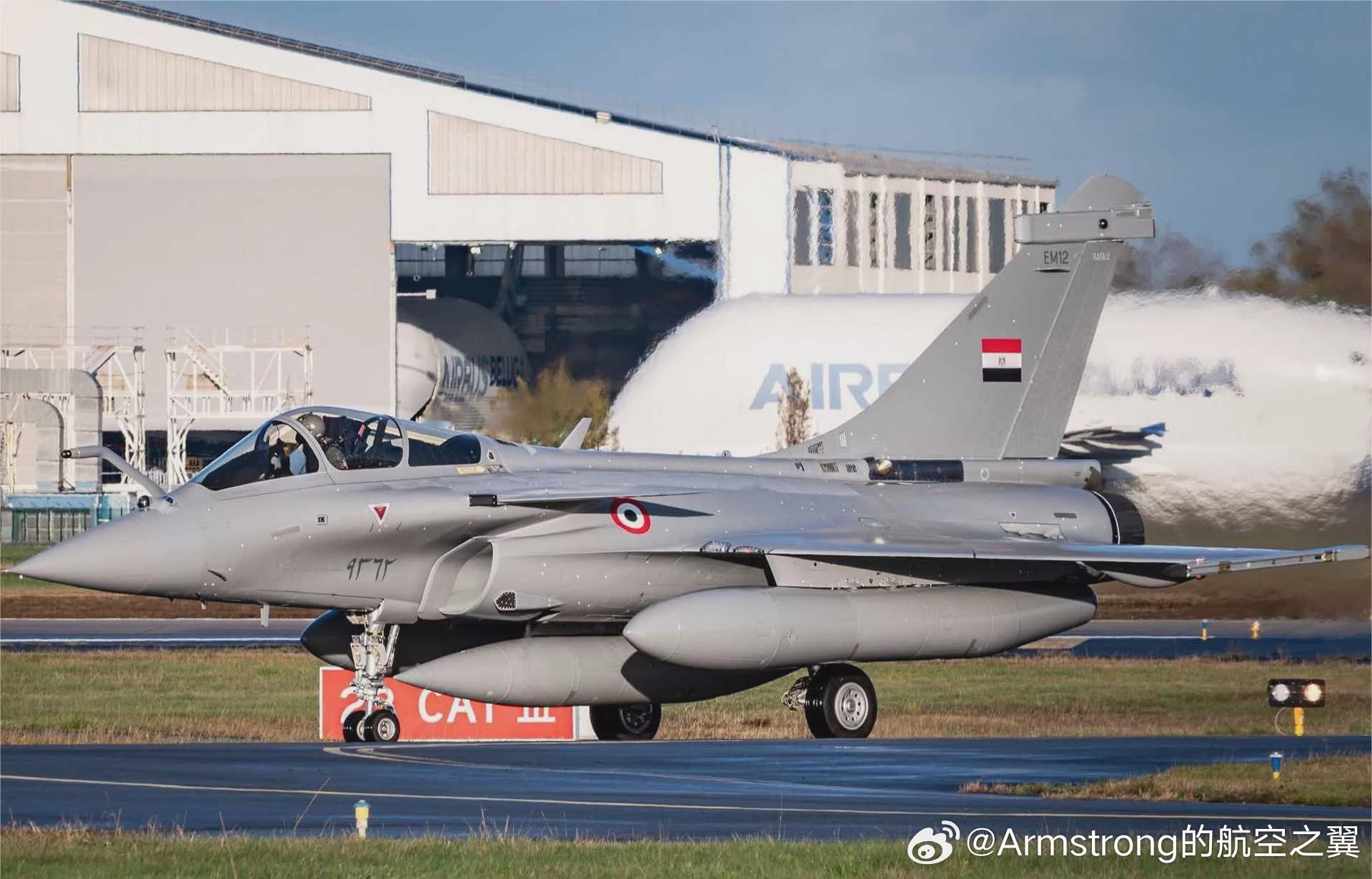 11月26日,一架涂有埃及空军标志、序列号为EM12的单座阵风战斗机在达索梅利尼亚克工厂试飞。