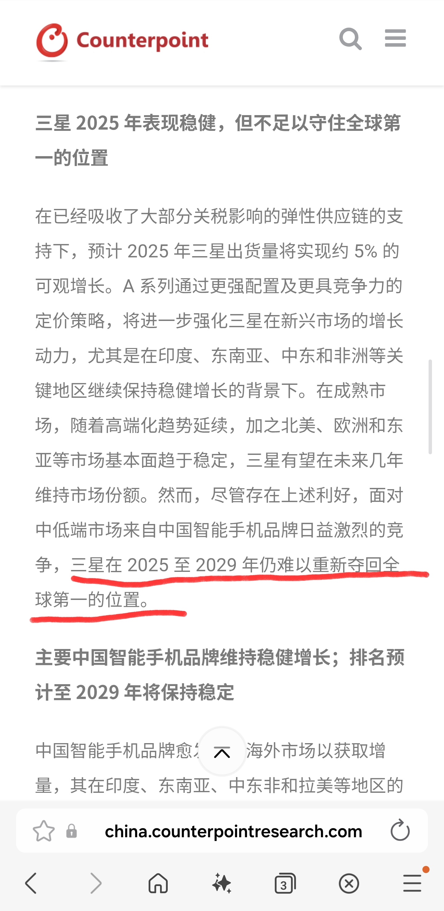 Counterpoint分析:苹果将保持全球销量之王的位置至少到2029年,三星将被持续压制,上有苹果,下有国产,双向挤压。
