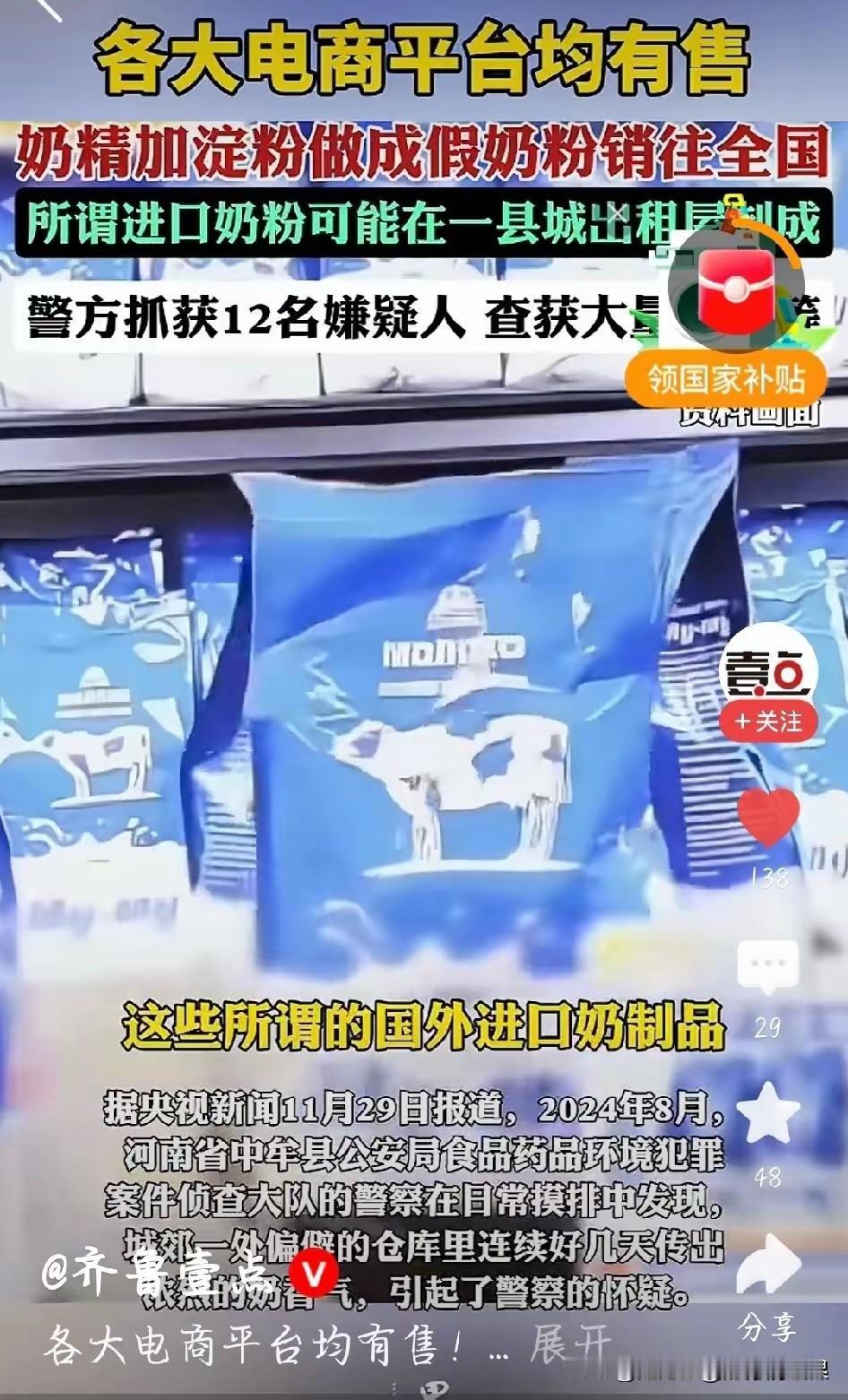 丧心病狂,良心不会痛吗!为了赚取不义之财,竟然制造销售假奶粉!奶精加淀粉勾兑,冒充进口奶粉网上销售! 别的东西假了就算了,这可是小孩子的口粮啊!长期喝这玩意,能有什么营养?良心不会痛吗? 支持对造假贩假团伙顶格处罚,罚他个倾家荡产!毒奶粉 骗老人买驼奶粉 奶粉陷阱 儿童奶粉骗局 黑心奶粉 三万桶假奶粉 国产奶粉黑幕