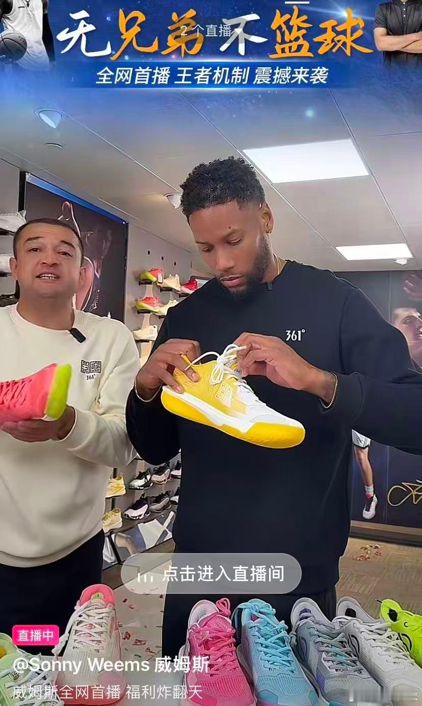 威姆斯和西热力江梦幻联动了,直播间人气火爆,两位的带货能力一点也不比打球差啊