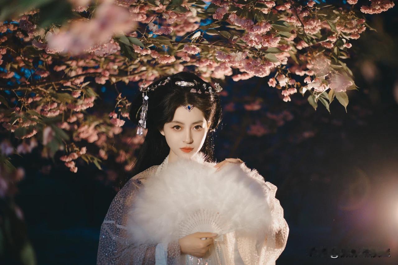 看到“粉衣少女立荷塘,花影摇曳似画中”,瞬间就有画面感了。想起李兰迪穿米白水墨牡