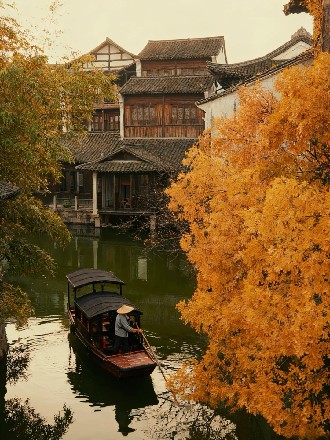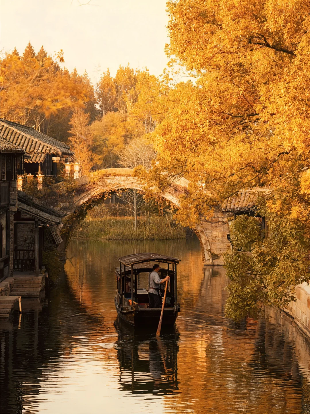 穿过古桥与老巷 船橹拨开水面 也拨开喧嚣