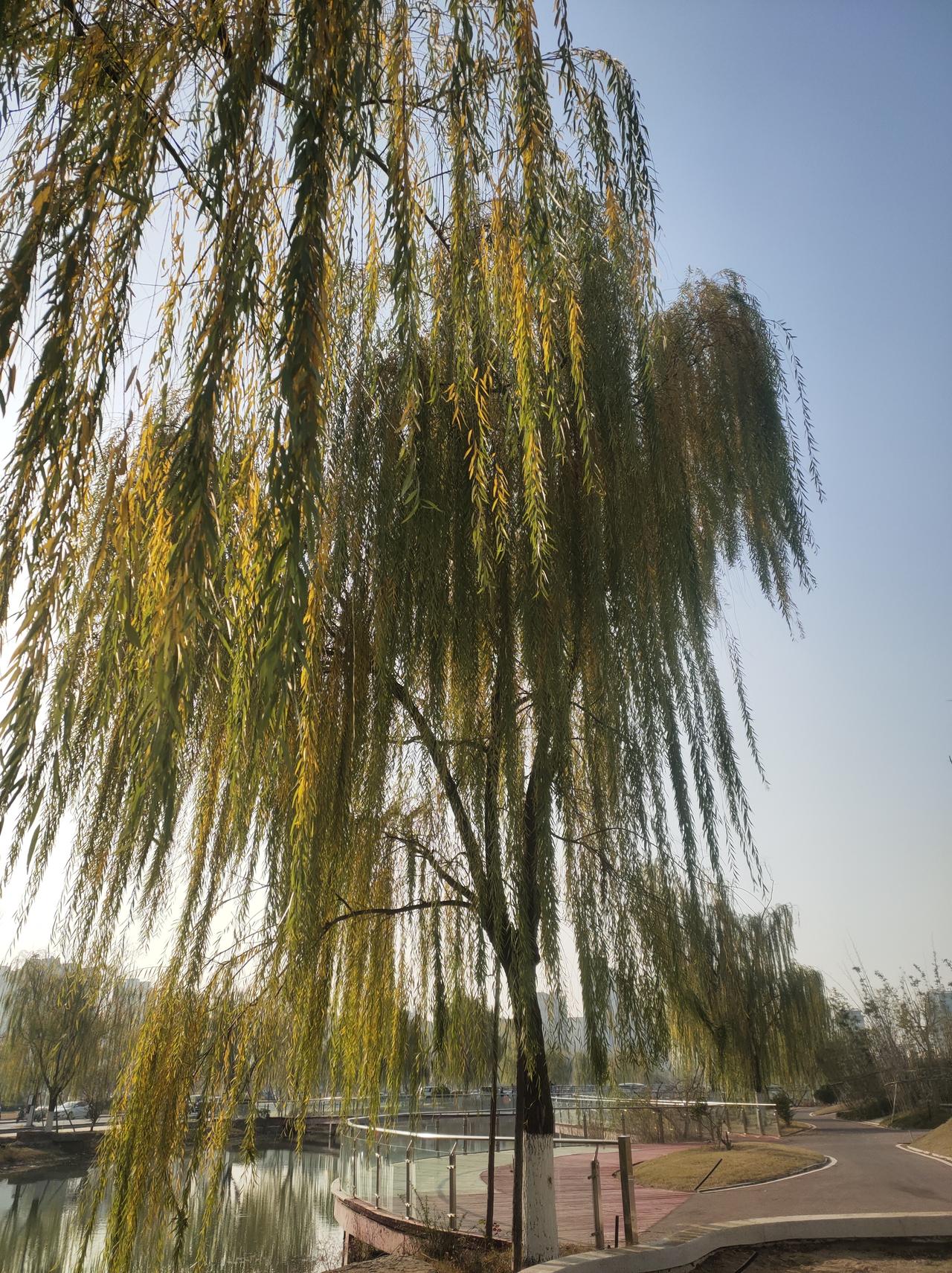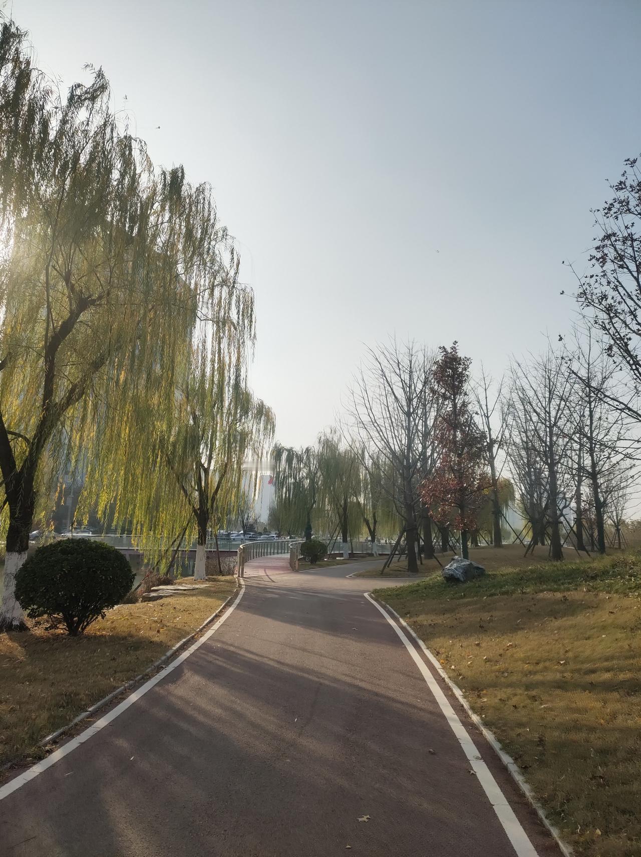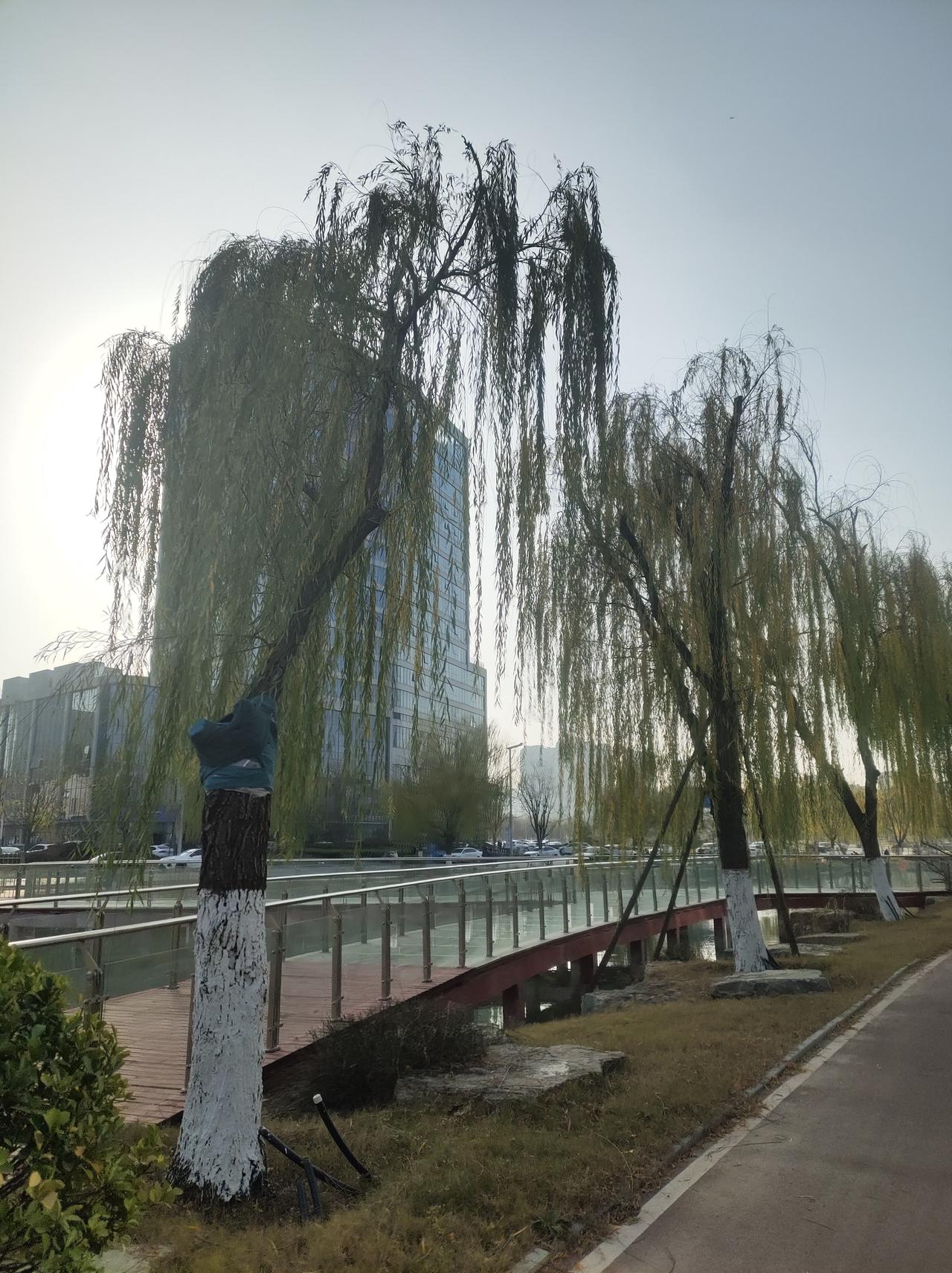 冬日午后暖阳,漫步河畔小径,红桥绿柳,湖水碧波荡漾,城市公园的宁静时光。🌞🍂🍂